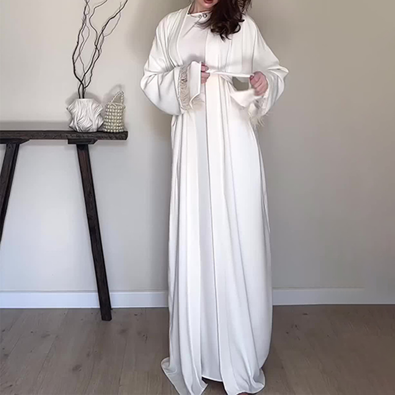 Product information: Color: white, camel Waist type: high waist Size: S,M,L,XL,XXL Sleeve type: regular sleeve Main fabric composition: Polyester (polyester fiber) Sleeve length: long sleeve Skirt Category: Dress