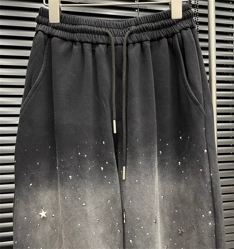 Product information: Fabric name: Cotton Color: Picture color Size: S,M,L Style type: private clothing socialite Popular elements: gradient color Style: straight-leg pants Style: sweet and spicy Process: Hot drill