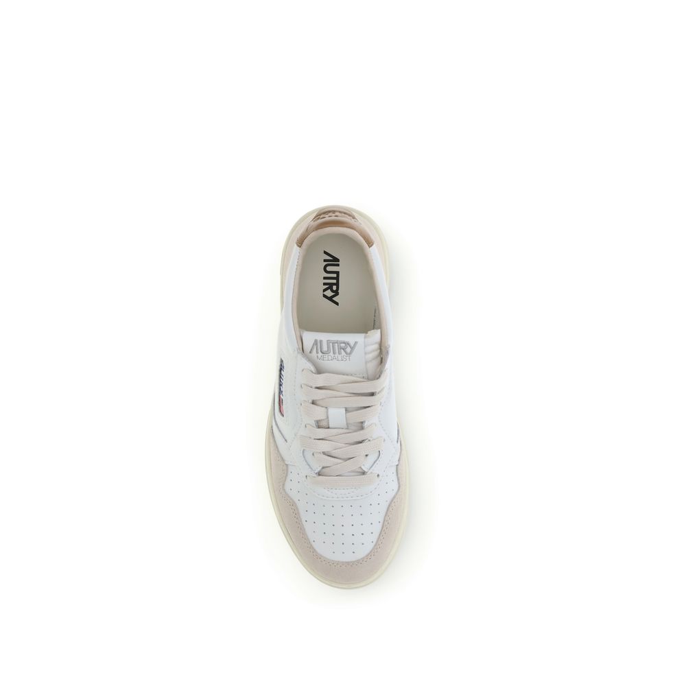 The Medalist Low leather Sneakers by Autry combine a retro aesthetic with thoughtful, recognizable details. Featuring a perforated round toe and front lace-up closure, they feature a leather tongue with tone-on-tone logo-embossed label and the iconic logo-embossed back heel. The logo-embossed leather insole and two-tone branded outsole add comfort and style, while the stars-and-stripes logo flag on the side signs the design with a distinctive touch.