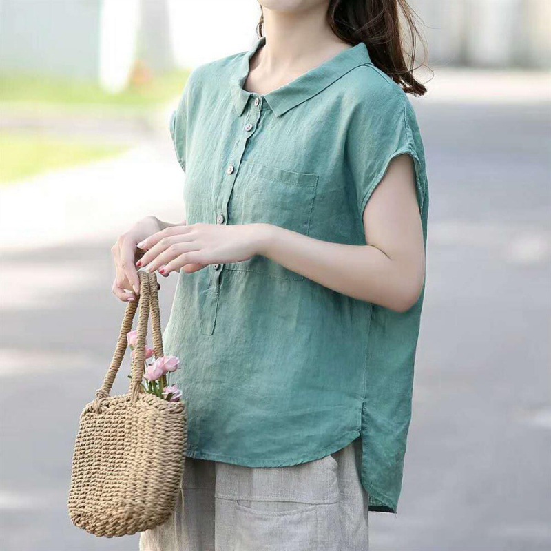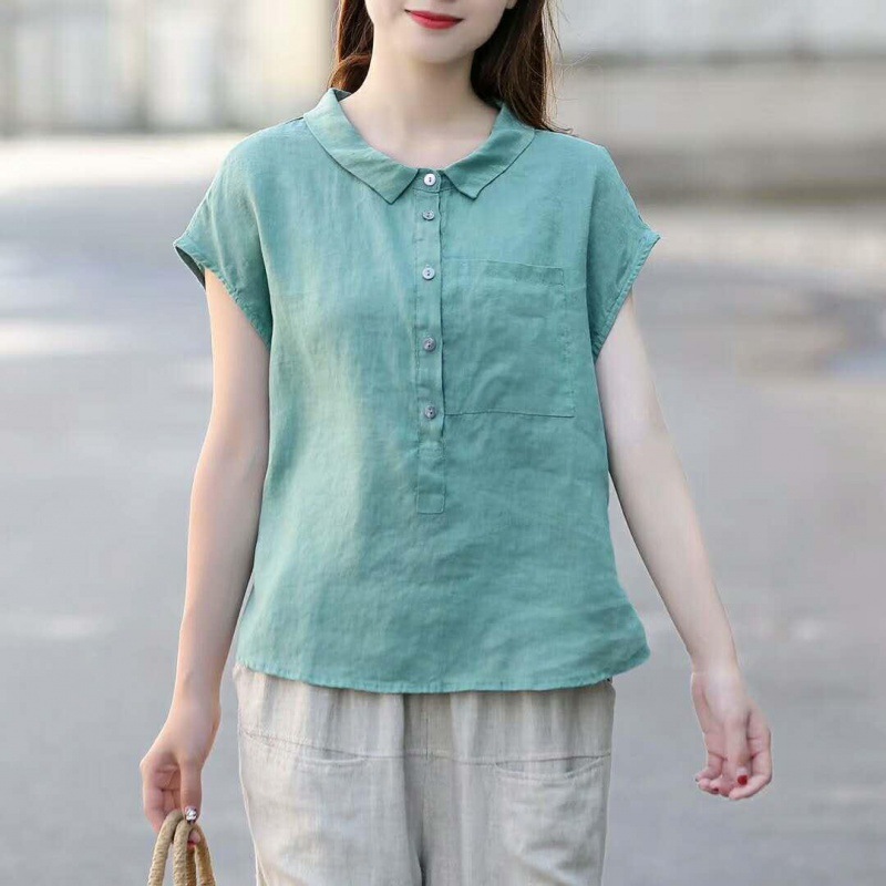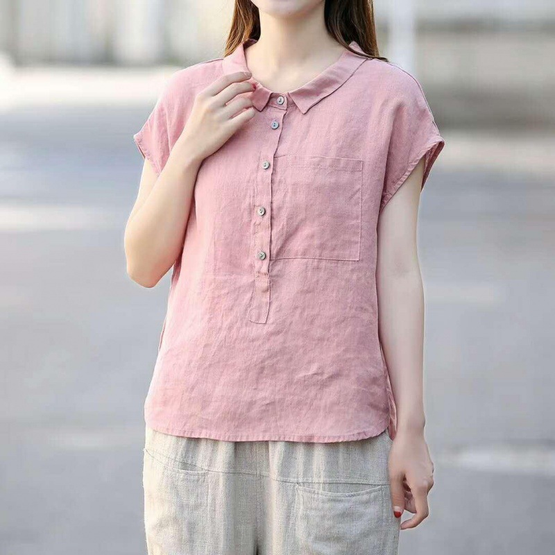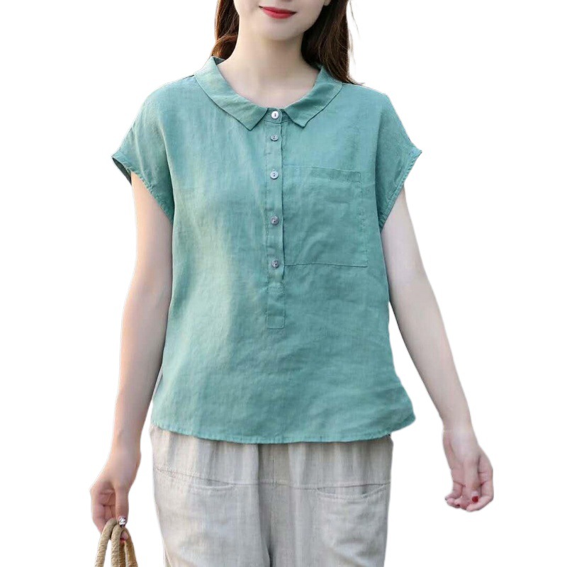 Summer new short sleeve doll collar fashion tops