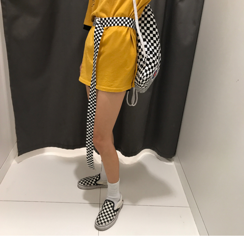 Black and white checkerboard plaid belt  Unisex