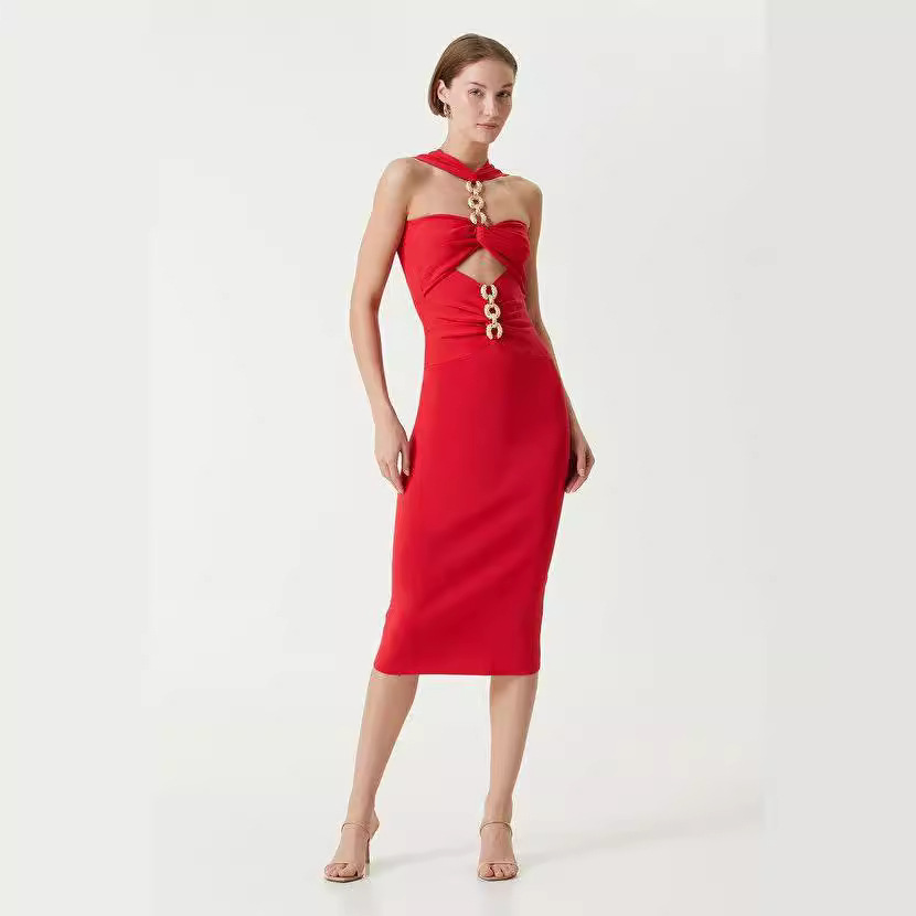 Product information: Skirt: One-Step skirt Color: red, white, black Size: XS,S,M,L Style type: temperament mute Popular elements: Garden buckle Style: Hartle Fabric name: Polyester Style: Elegant style Process: high temperature stereo