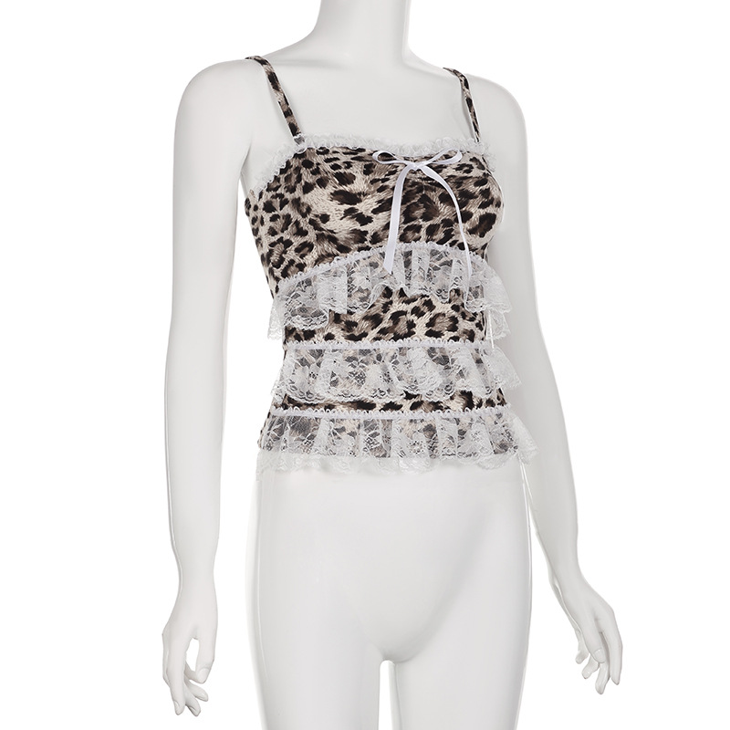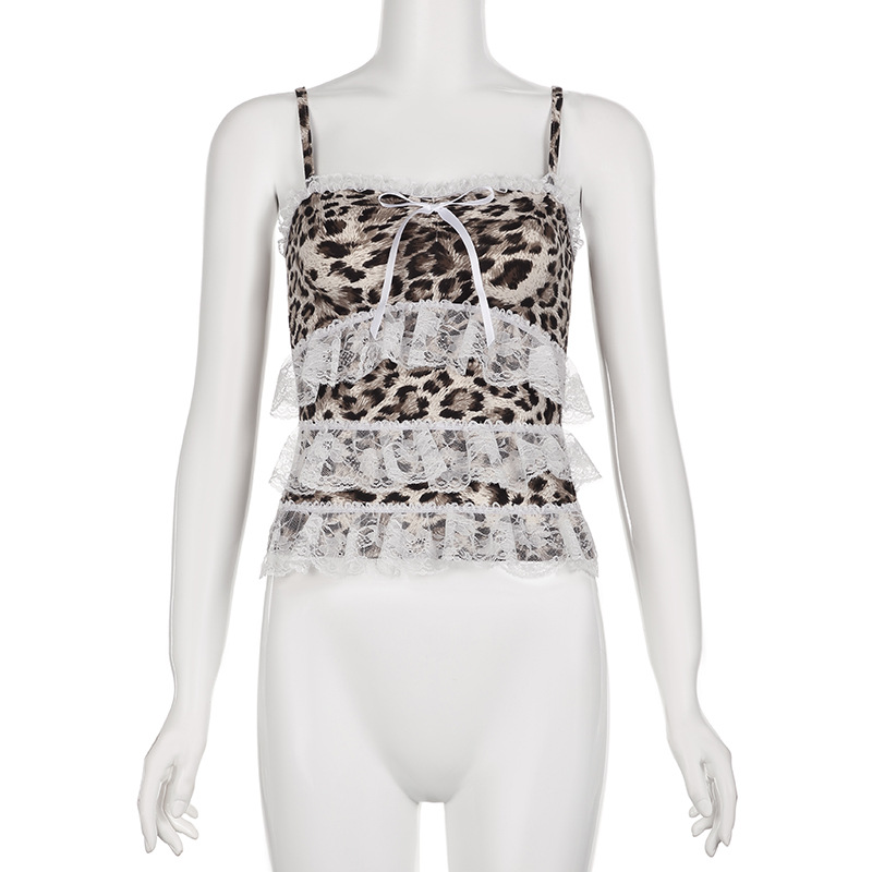 Product information: Pattern: Leopard print Color: Brown Size: S,M,L Style: slim fit Main fabric composition: Cotton Shoulder strap style: double connector type