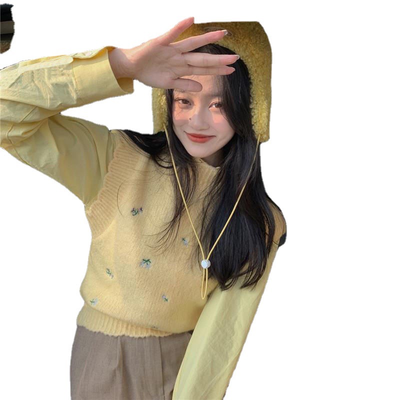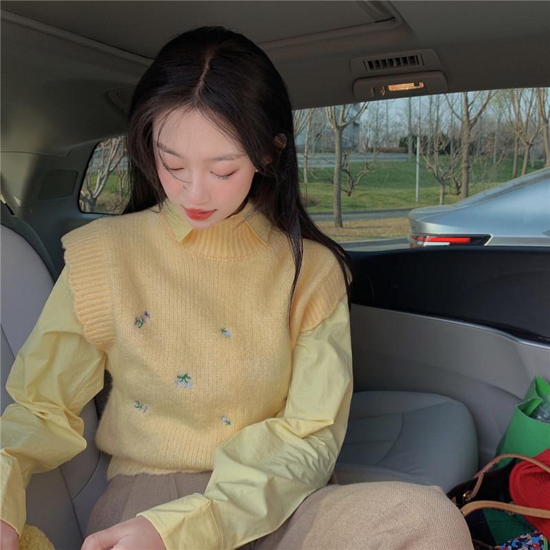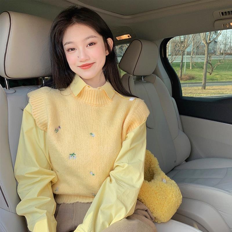 Product information :Main fabric composition: CottonContent of main fabric ingredients: 30%-50%Color: yellow knitted vest, yellow shirt, yellow knitted vest + yellow shirtSize Information:Size: S,M,L,XLPacking list:Vest*1,