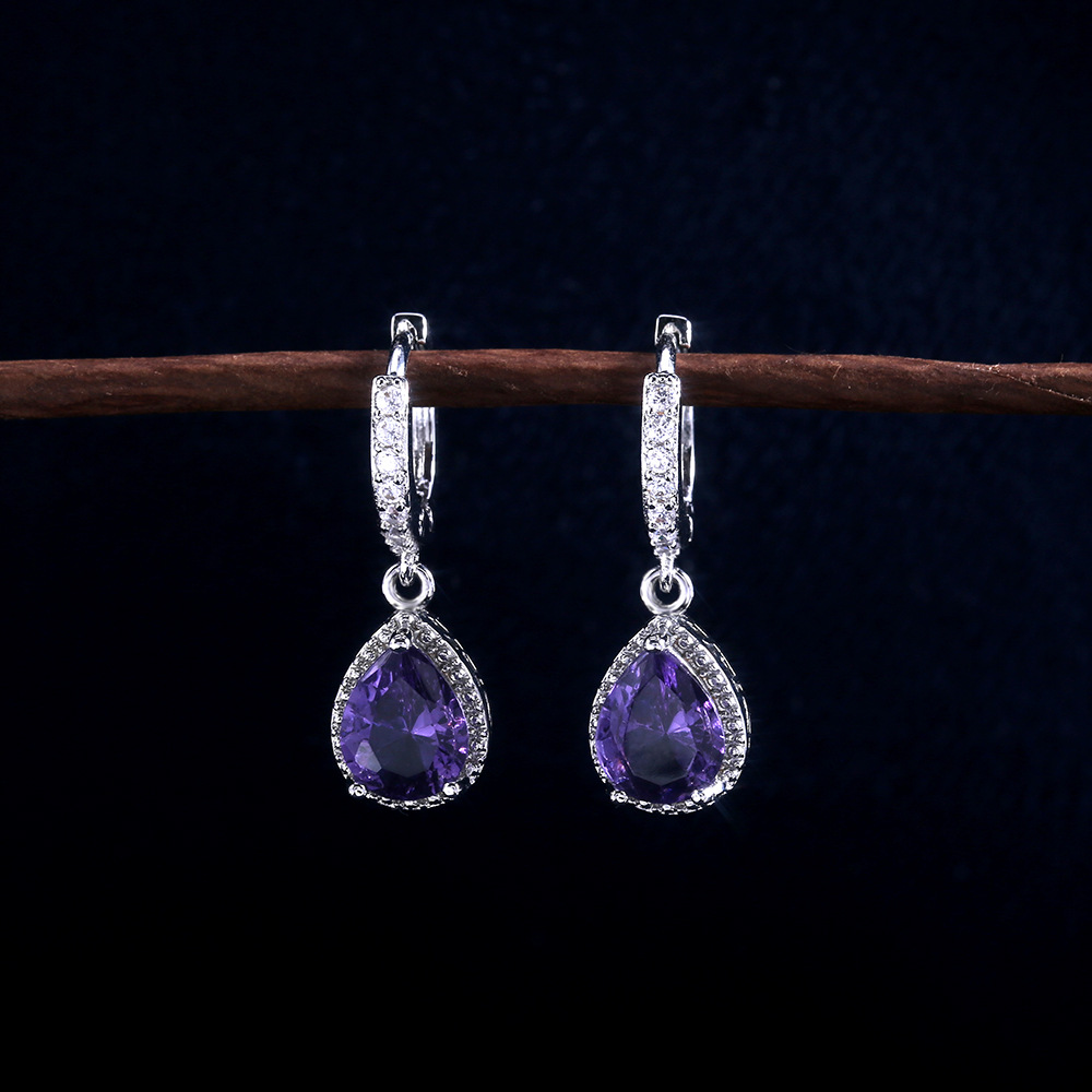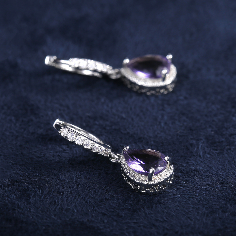 Prong set purple gemstone earrings