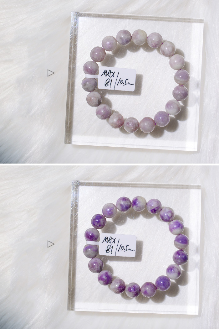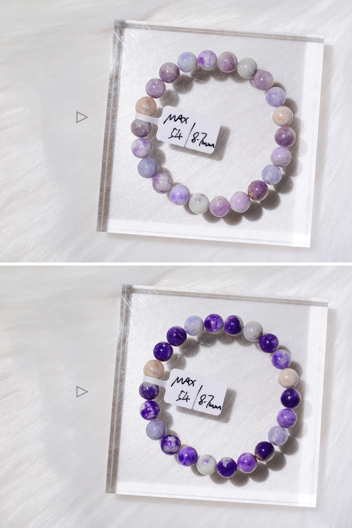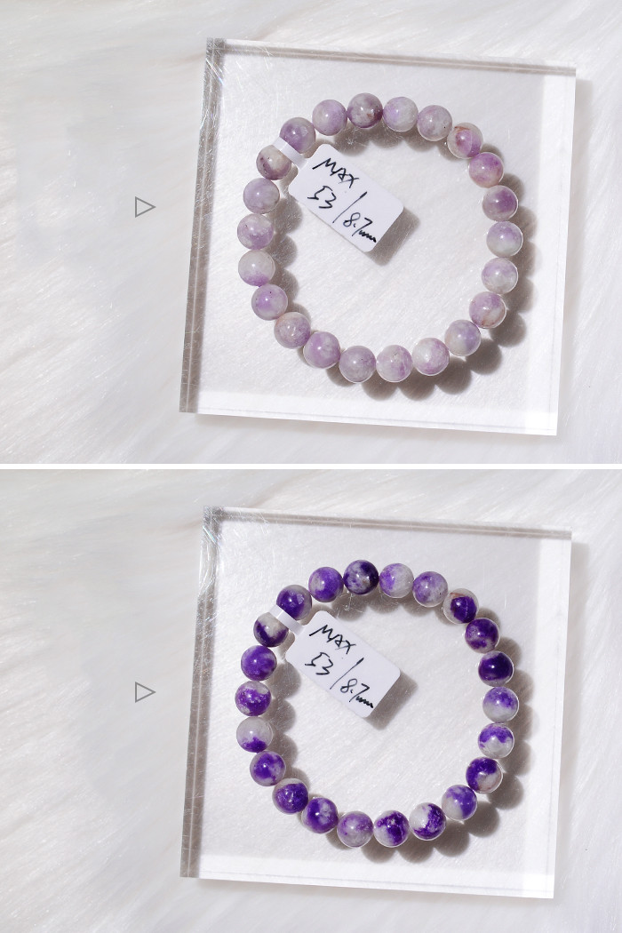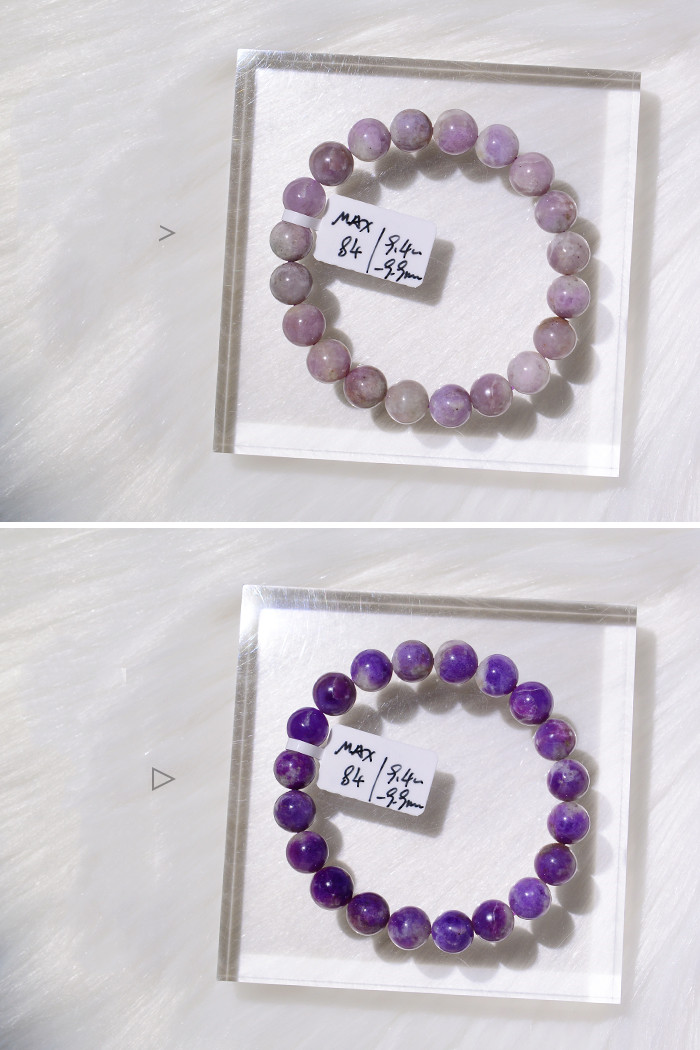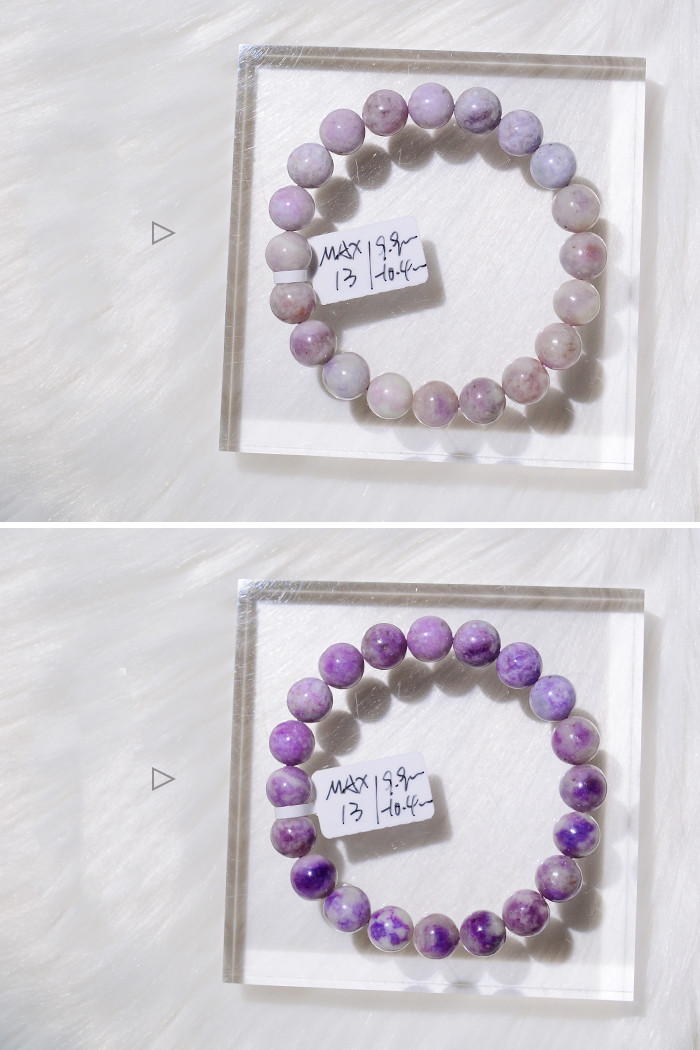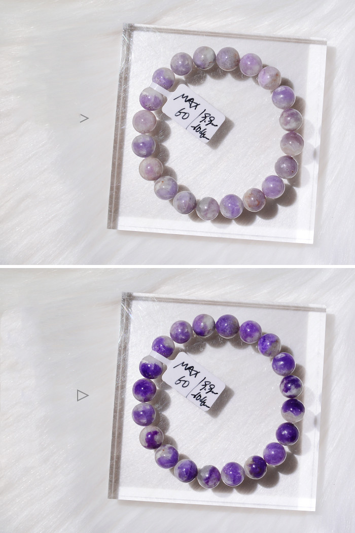 When you meet the sun, it seems that its color changes with its mood, which is very interesting. When you slowly fall in love with it, you will find that it can return to its original color after changing color, which will bring you back to the first sight. The ability" originates from {photochromic}, and only the purple sodalite in sodalite has this ability.