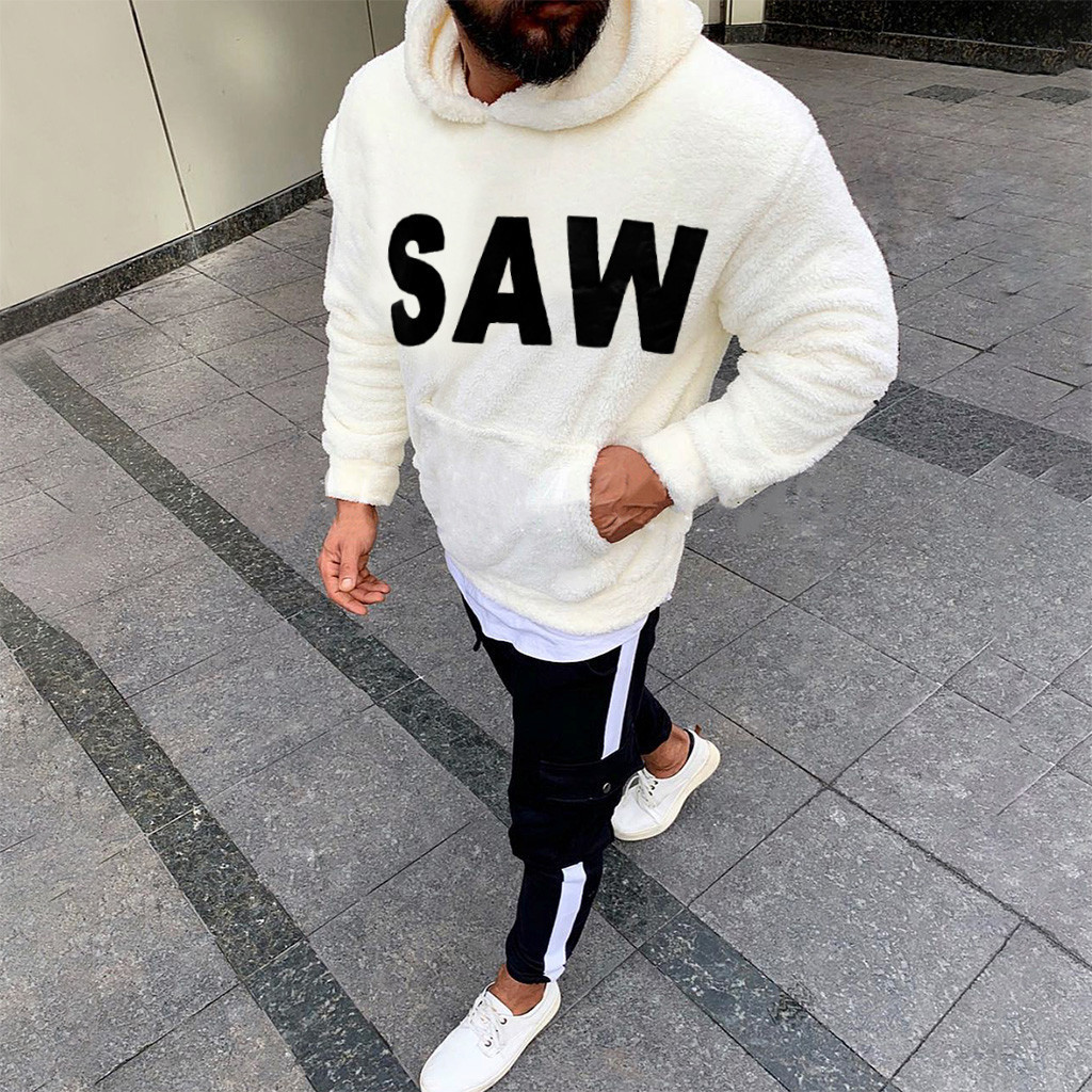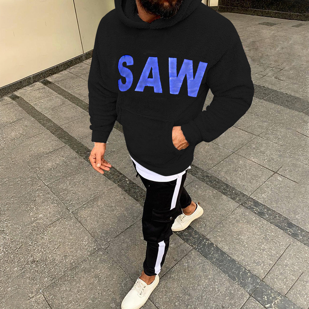 SAW printed men's solid color sweater hoodie