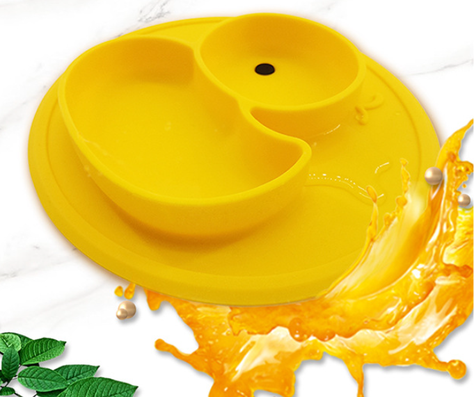 Product Category: Dinner Plate/TrayMaterial: SiliconeApplicable age: more than 6 monthsColor: yellow, blue