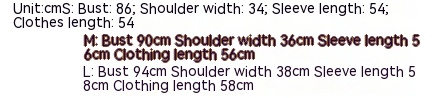 1. Asian sizes are 1 to 2 sizes smaller than European and American people. Choose the larger size if your size between two sizes. Please allow 2-3cm differences due to manual measurement. 2. Please check the size chart carefully before you buy the item, if you don't know how to choose size, please contact our customer service. 3.As you know, the different computers display colors differently, the color of the actual item may vary slightly from the following images.