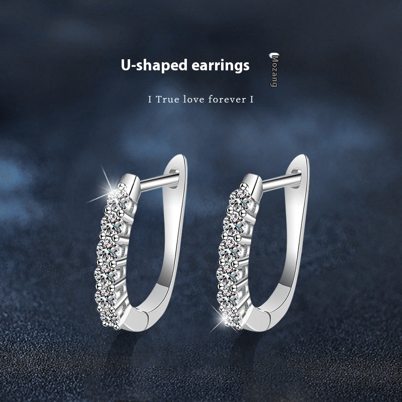 Product information:Treatment Process: Electroplating Color: 3 points moissanite (white gold color) Applicable population: Female Material: Silver Purity: 925 silver Shape: U-shaped Style: Simple