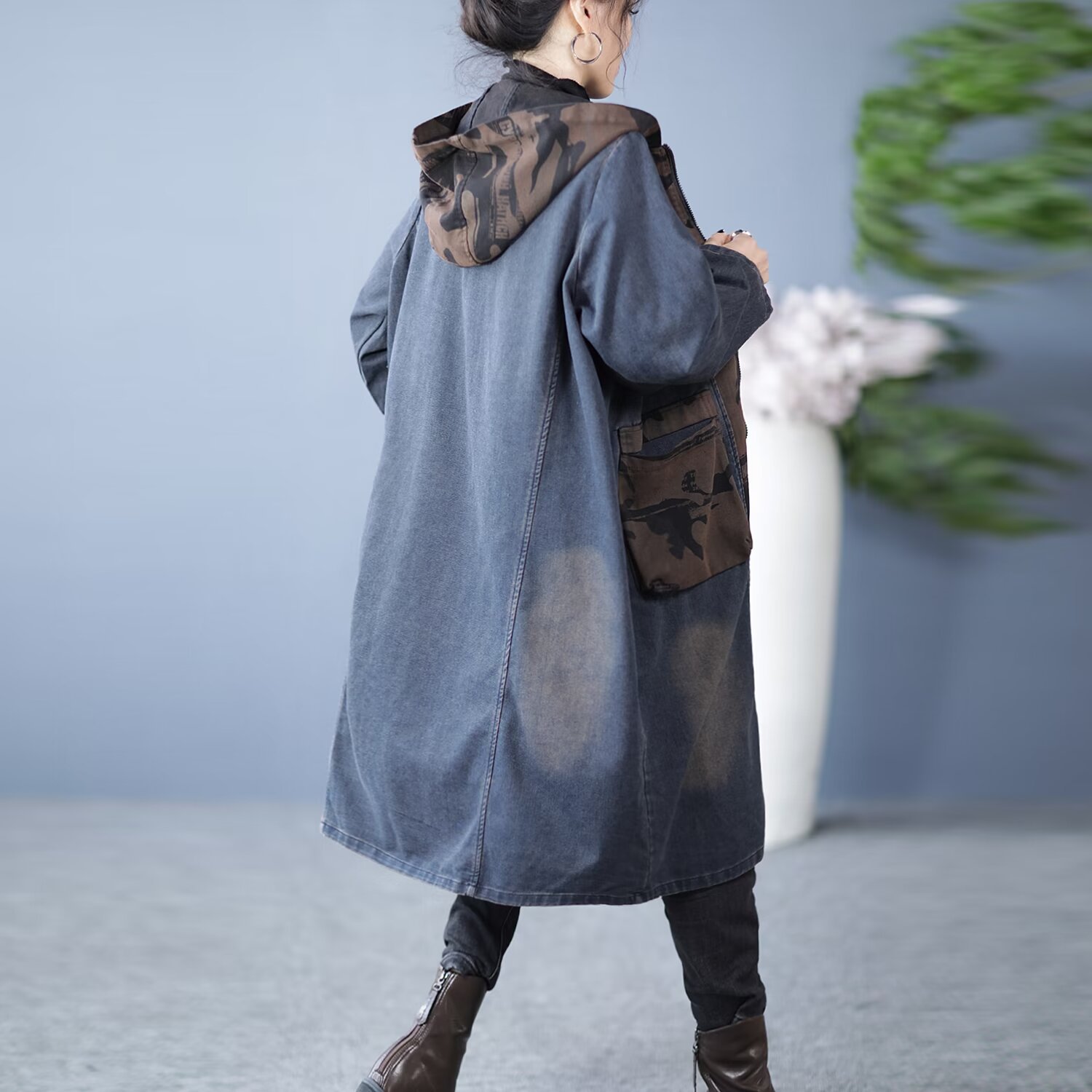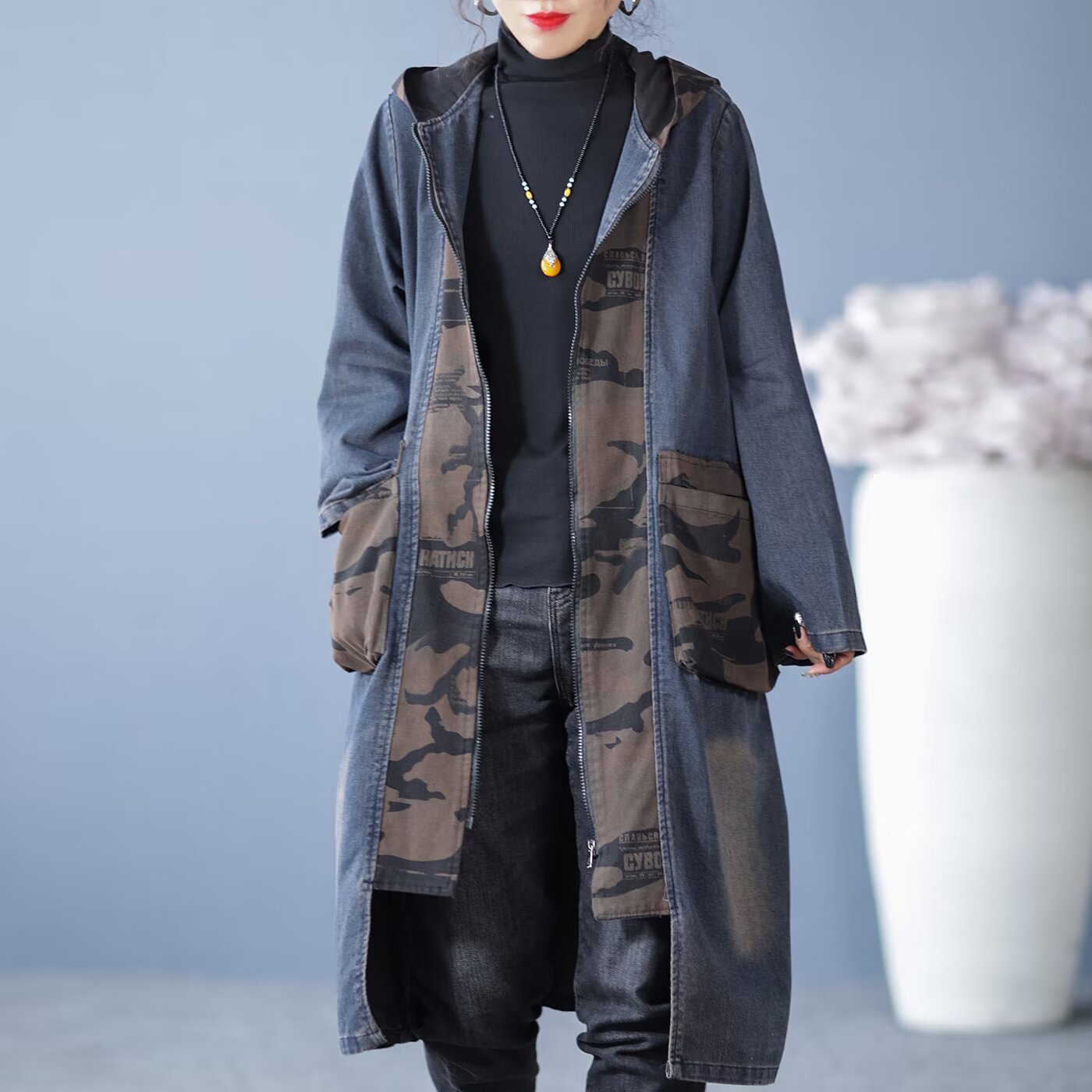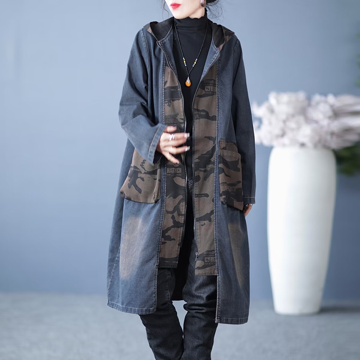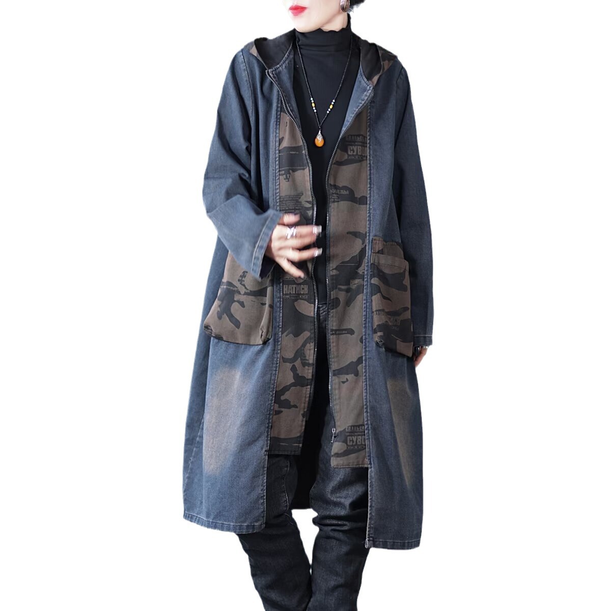 Product information:Fabric name: denim Color: Black, Blue Main fabric composition: Cotton Size: free size Version: Loose