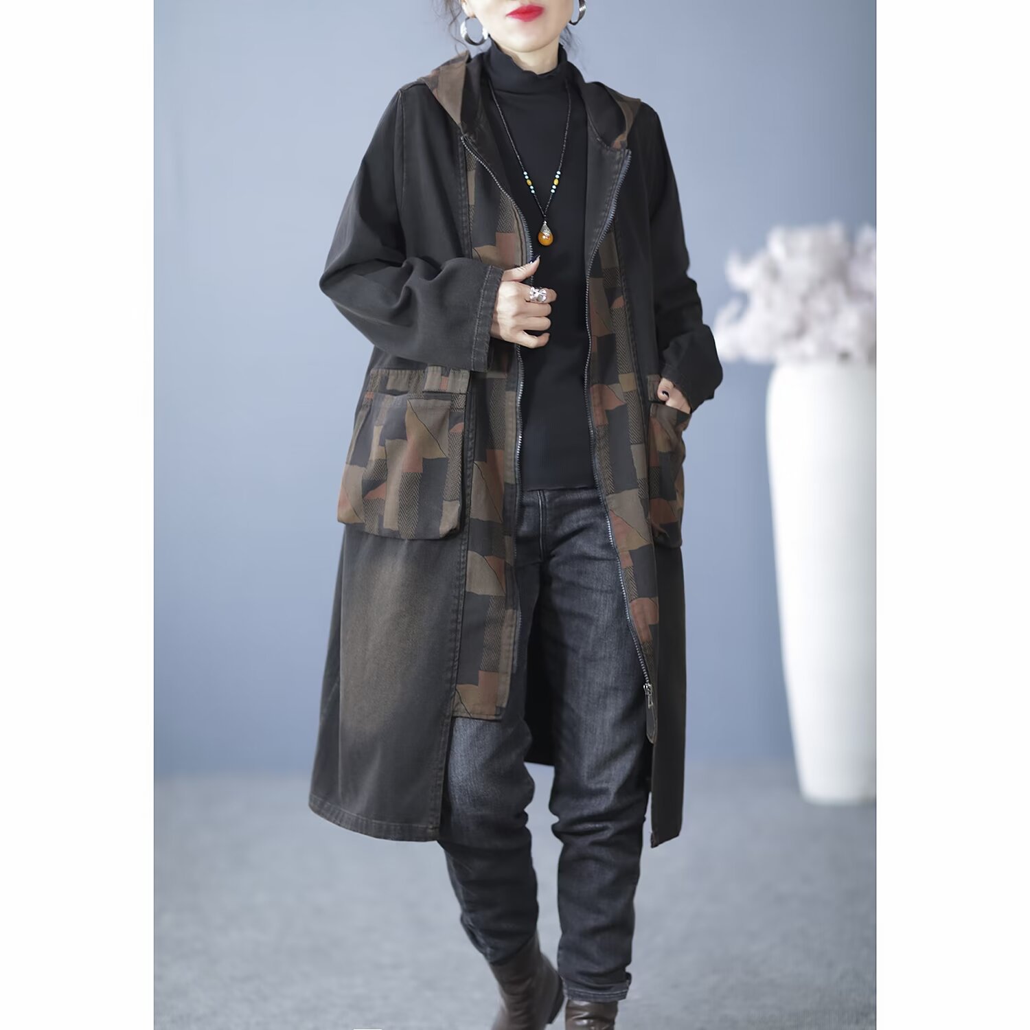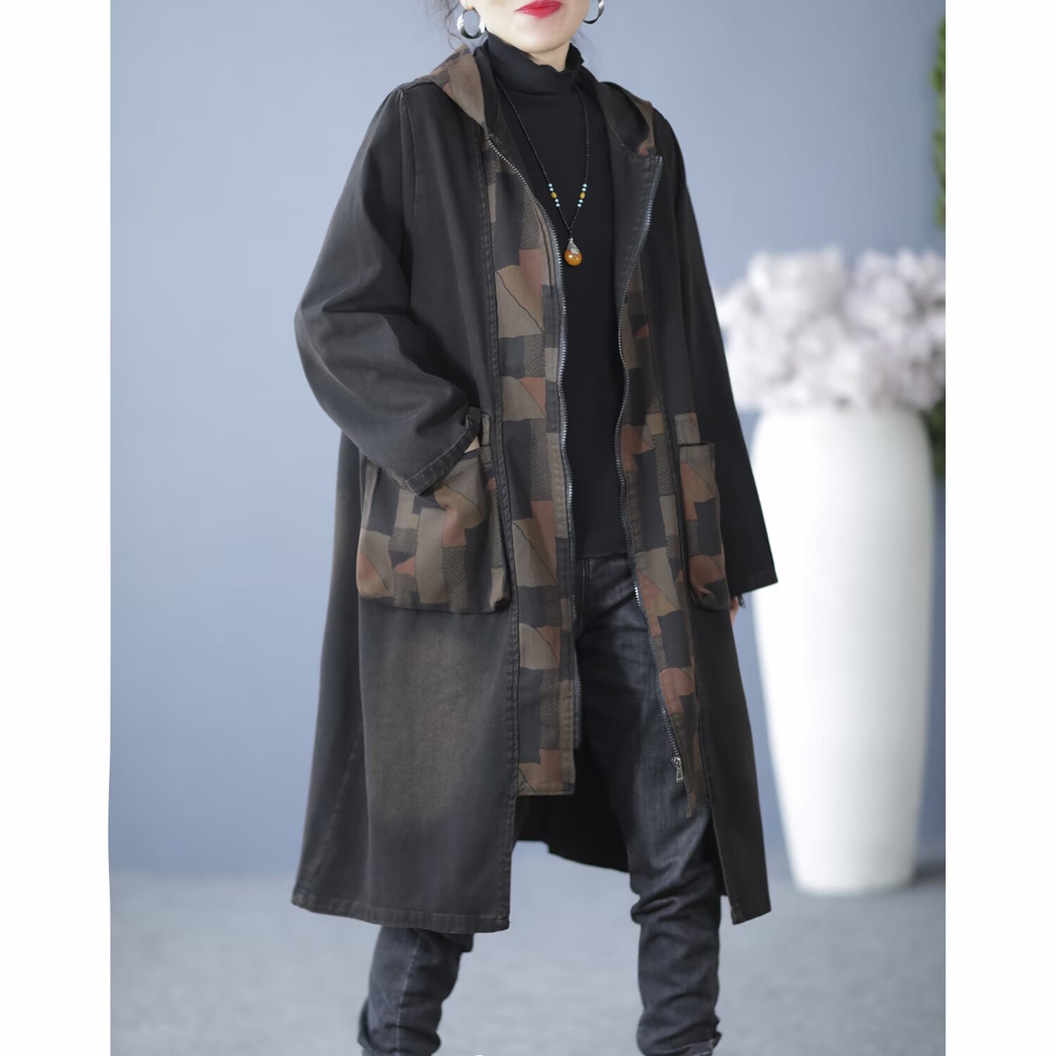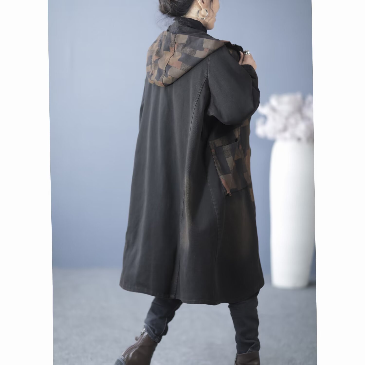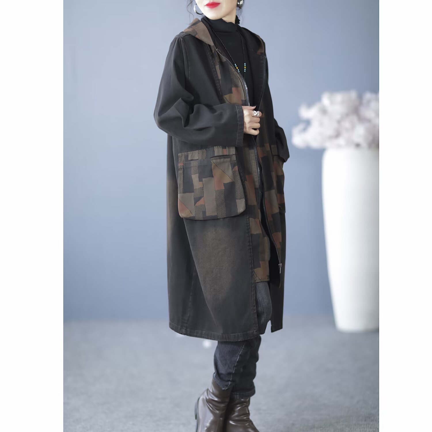 Product information:Fabric name: denim Color: Black, Blue Main fabric composition: Cotton Size: free size Version: Loose