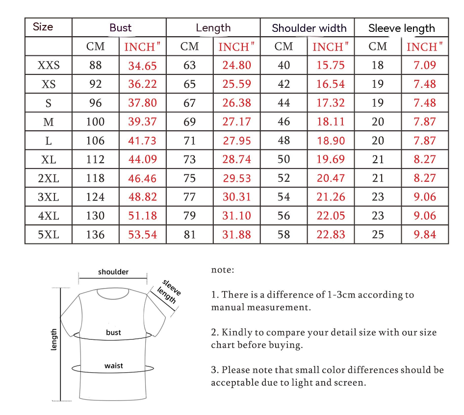 Size: S,M,L,XL,2XL,3XL,4XL,5XL