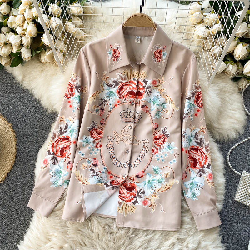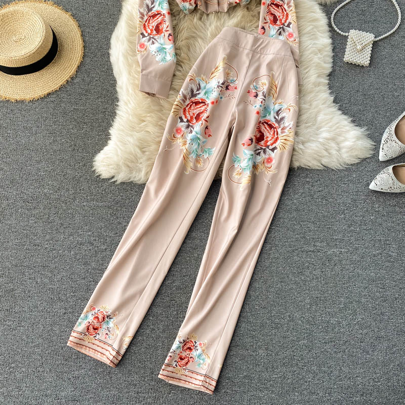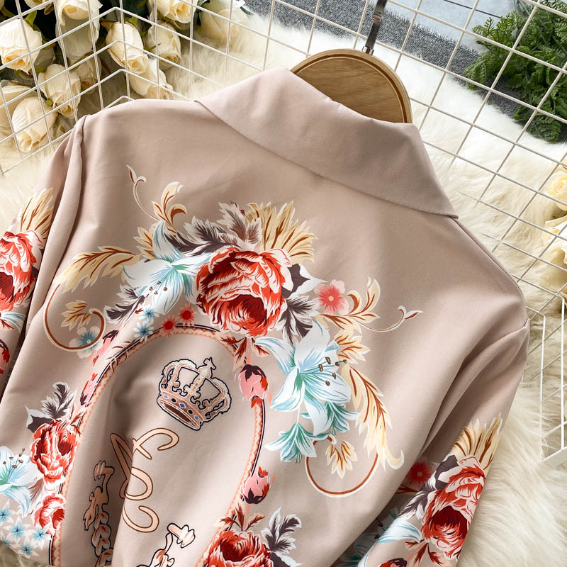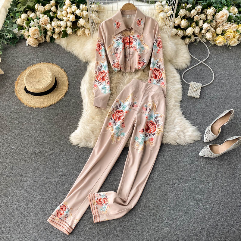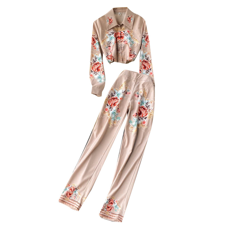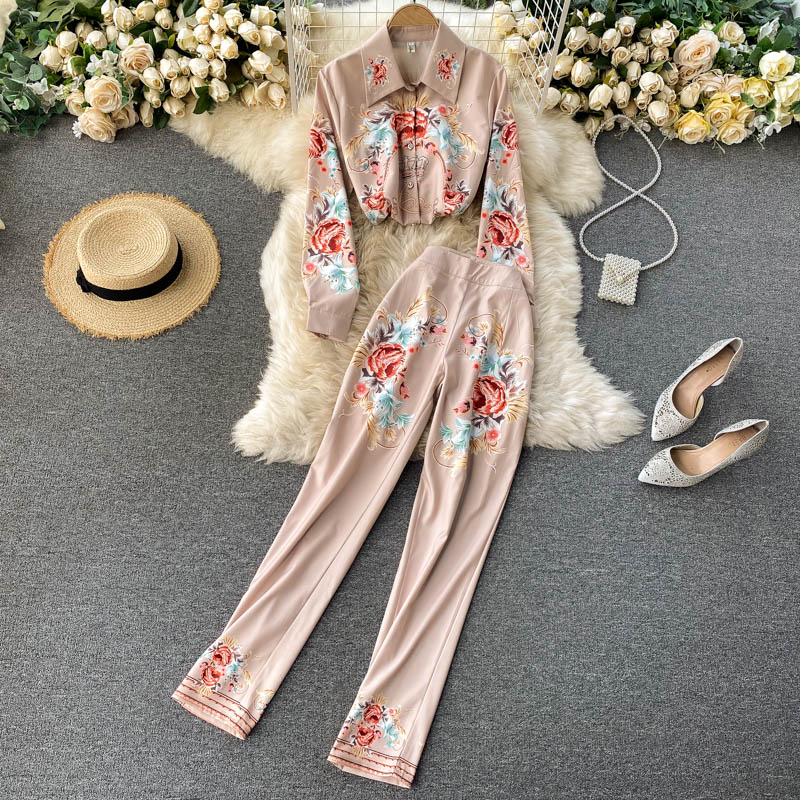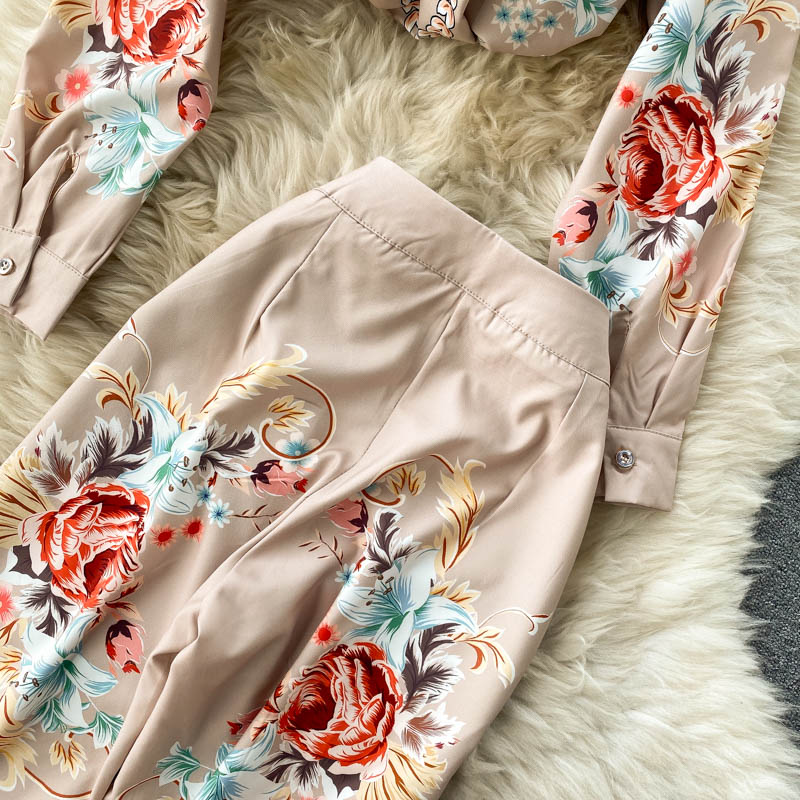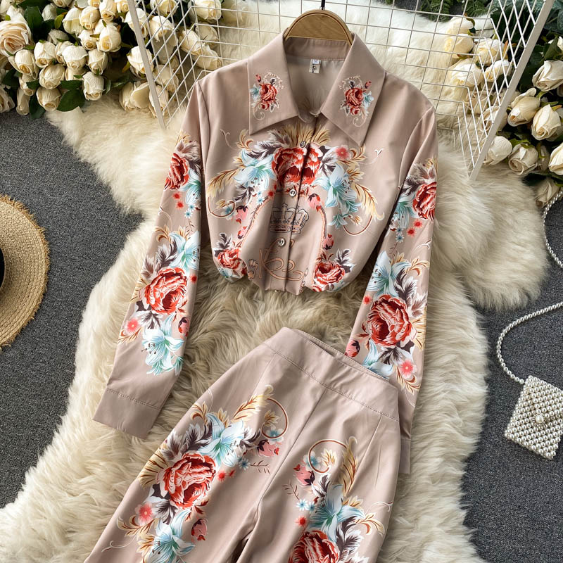 Product information:Style: VintagePattern: PrintingStyle: Two-piece suitTop style: shirtTop sleeve length: long sleevePopular elements: printingProcess: Printing/Dyeing