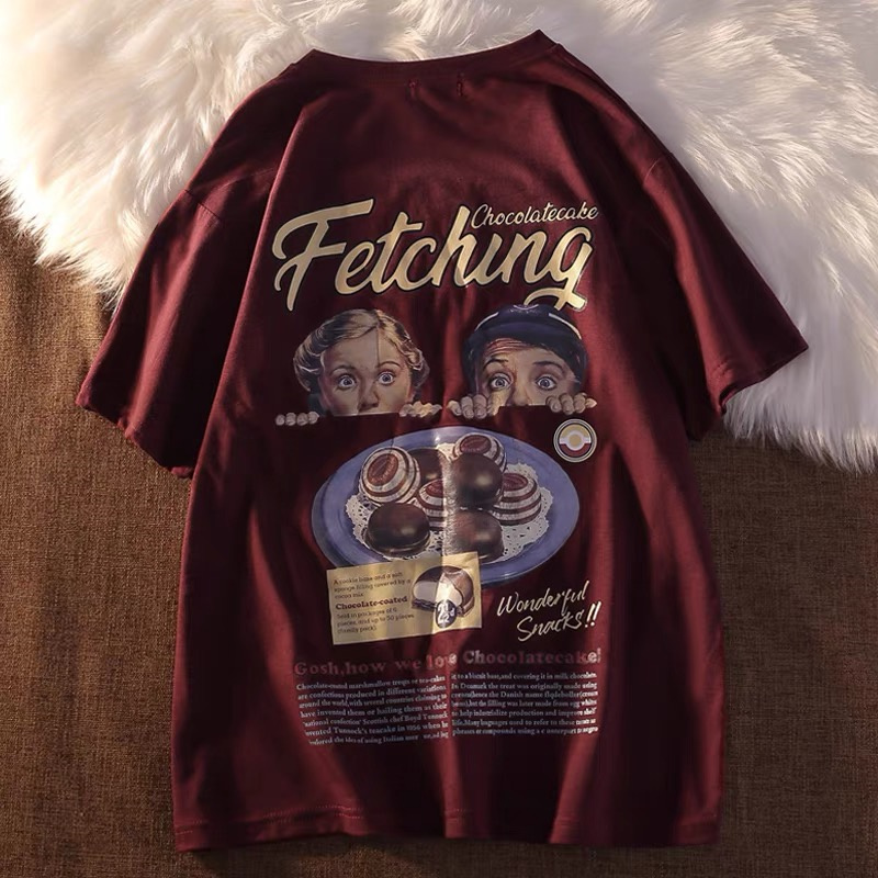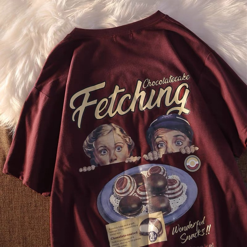 Main color: (Fetchung front and back print) Short Sleeve Burgundy