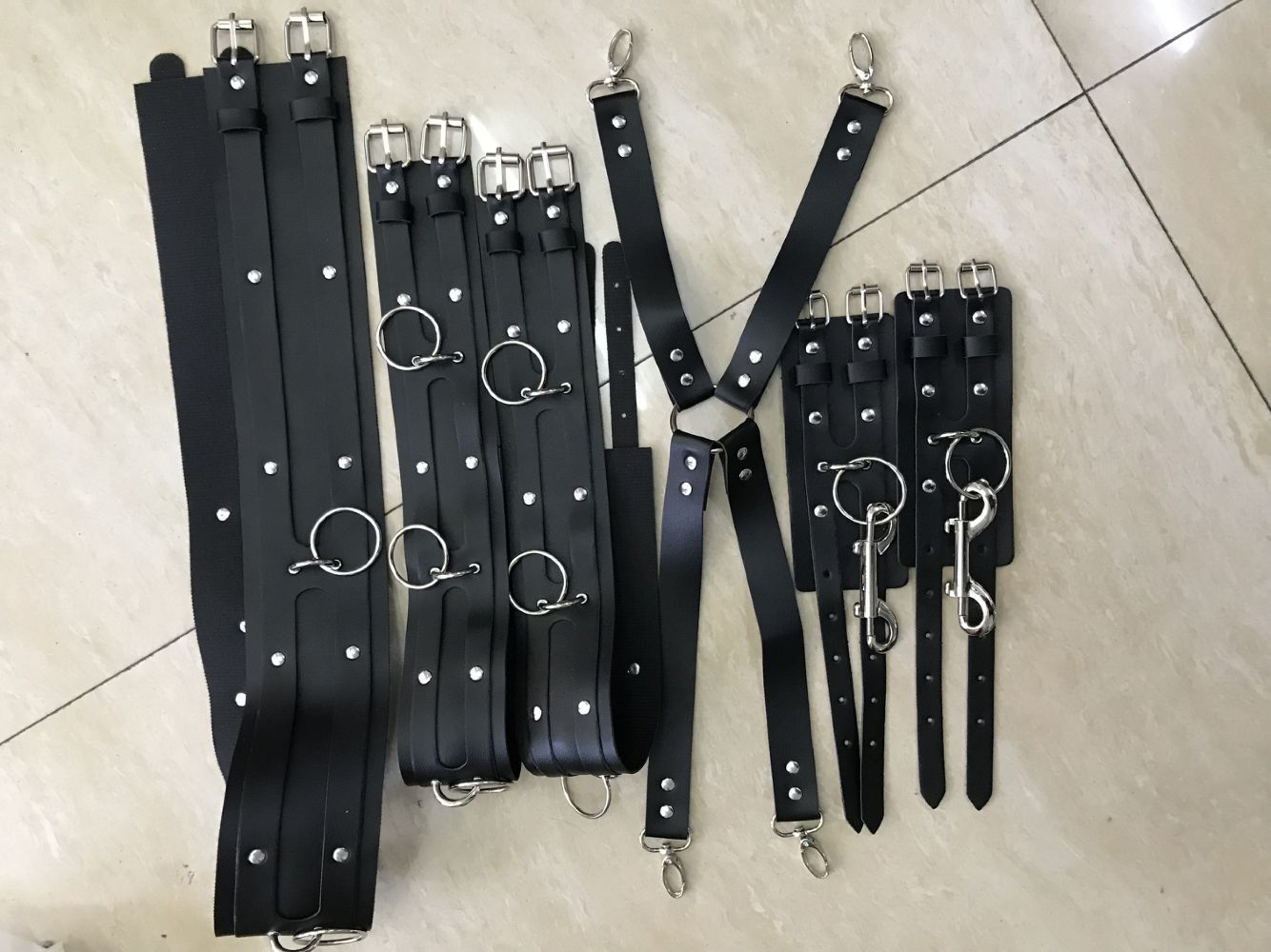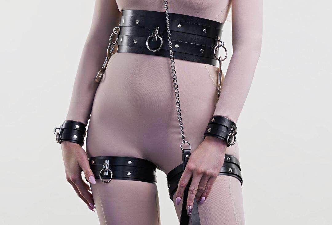 Four piece belt setWaist seal + leg ring + handcuffs + pendant