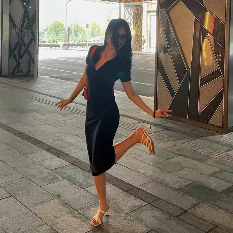 Product information: Skirt type: hip skirt Color: Black Waist type: high waist Size: S,M,L,XL Style: Basic Sleeve type: regular sleeve Main fabric composition: Polyester Fiber Sleeve length: short sleeve Skirt Category: Dress