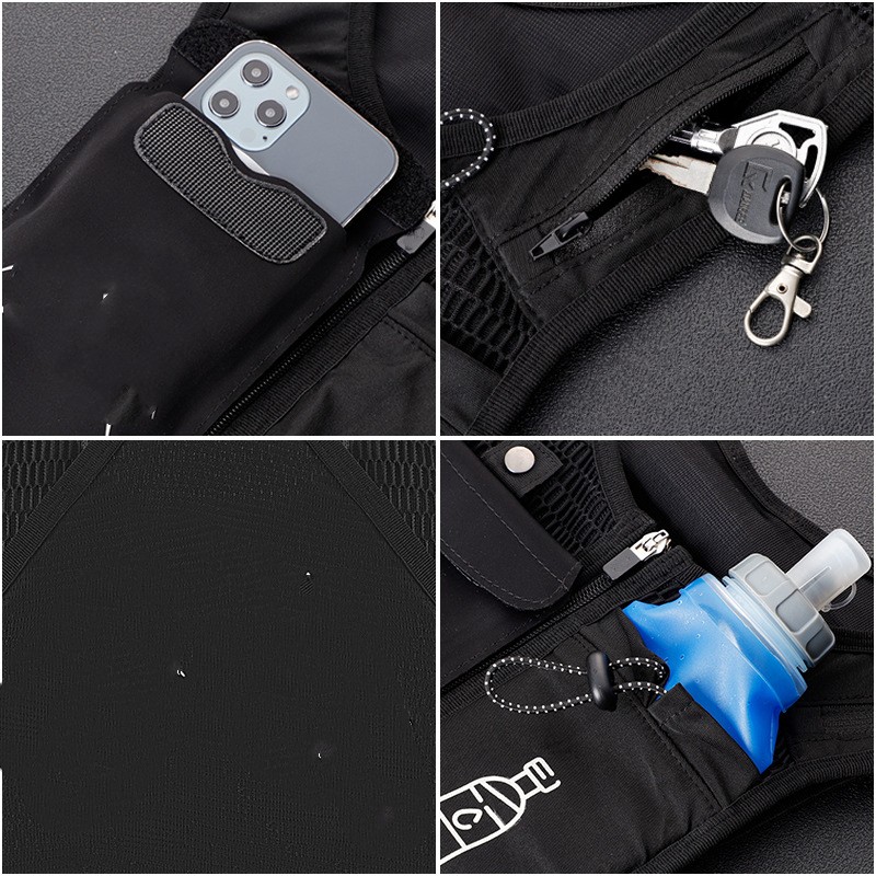 Product information :Material: nylonColor: black gray black +500ml kettle gray +500ml kettleApplicable scenario: running bagSize Information:Size: 23x35cmPacking list:Kettle *1, vest bag *1