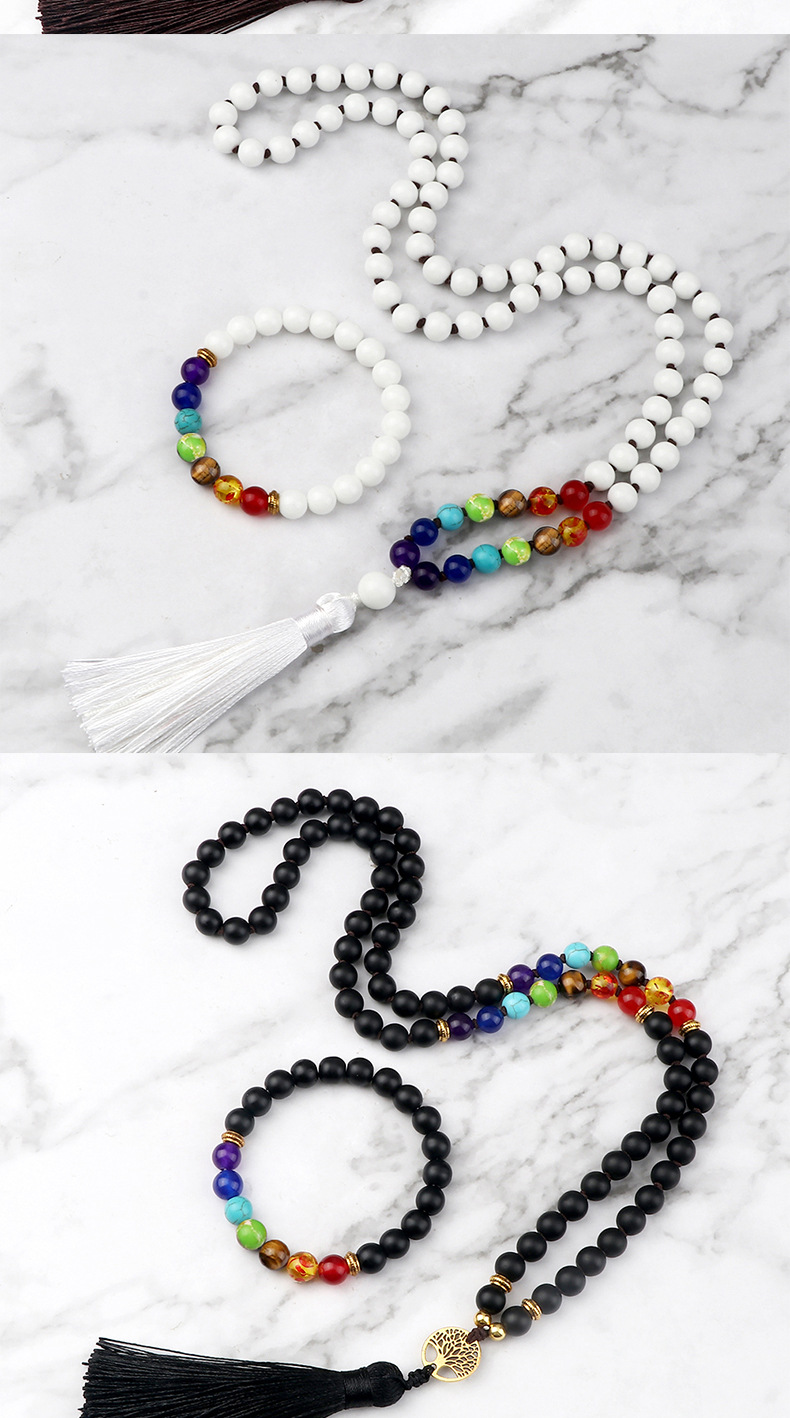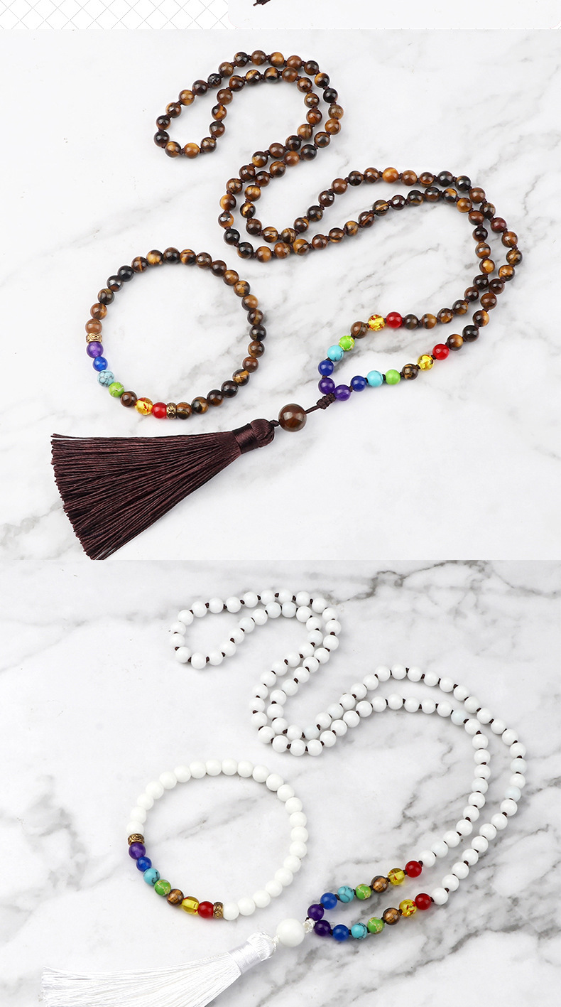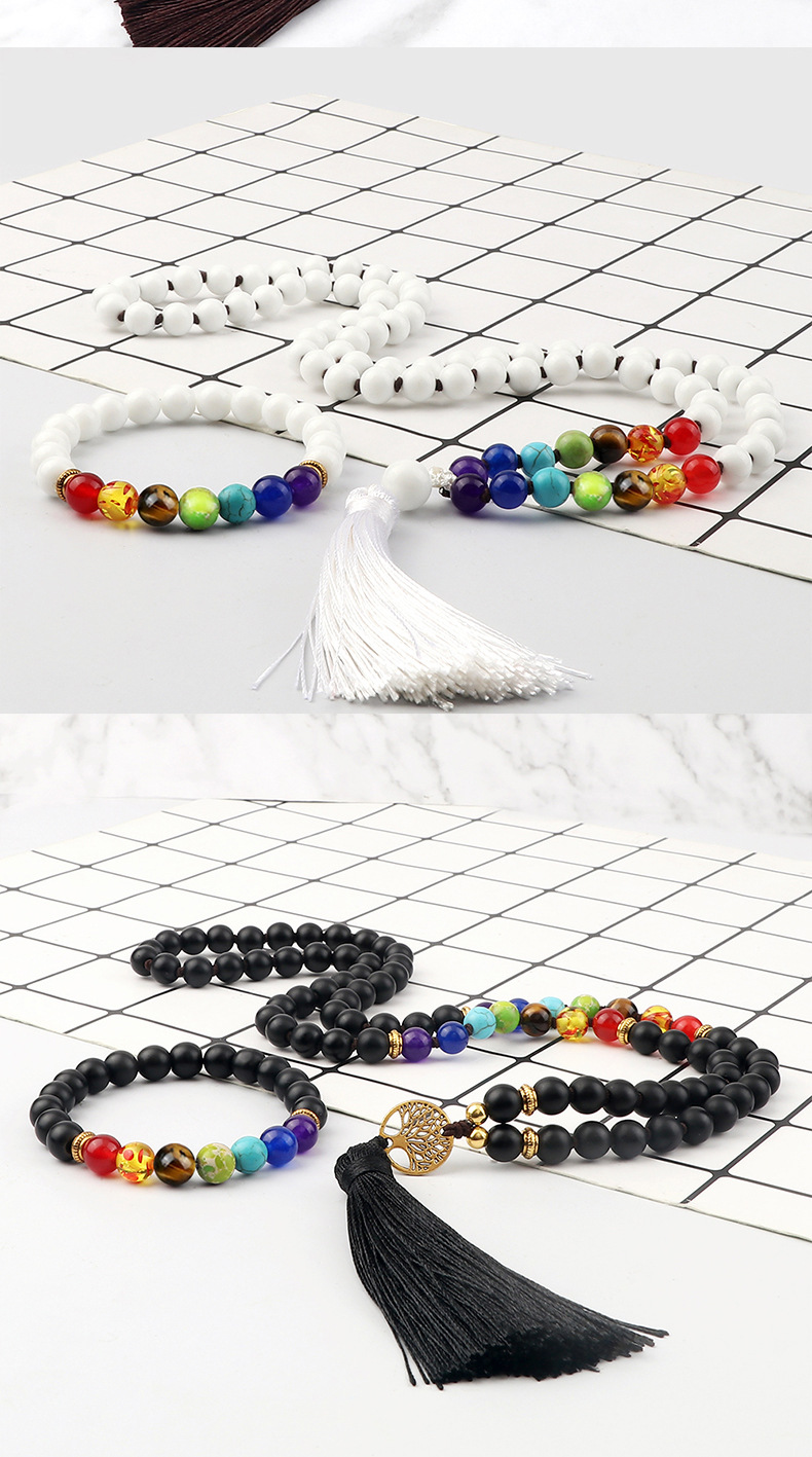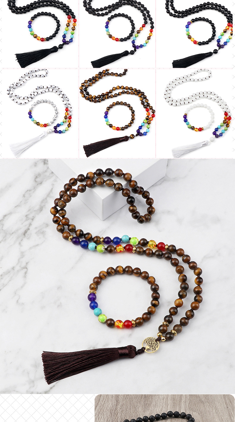 Product information:Treatment Process: Electroplating Type: long necklace Color: Frosted, bright light, volcano, white porcelain, black thread pine, Tiger Eye, Agate Size: 6mm,8mm Style: Unisex Material: Alloy Shape: Bow Style: Ruili