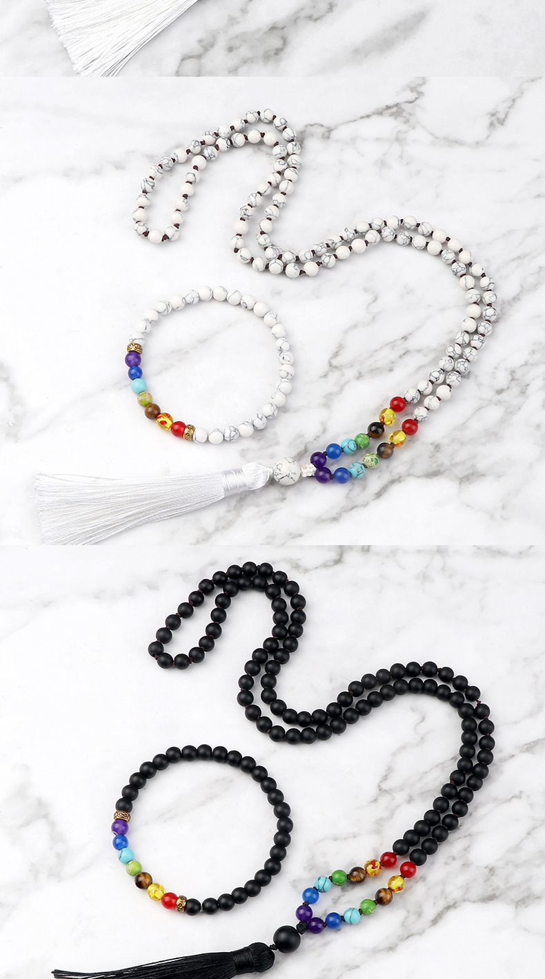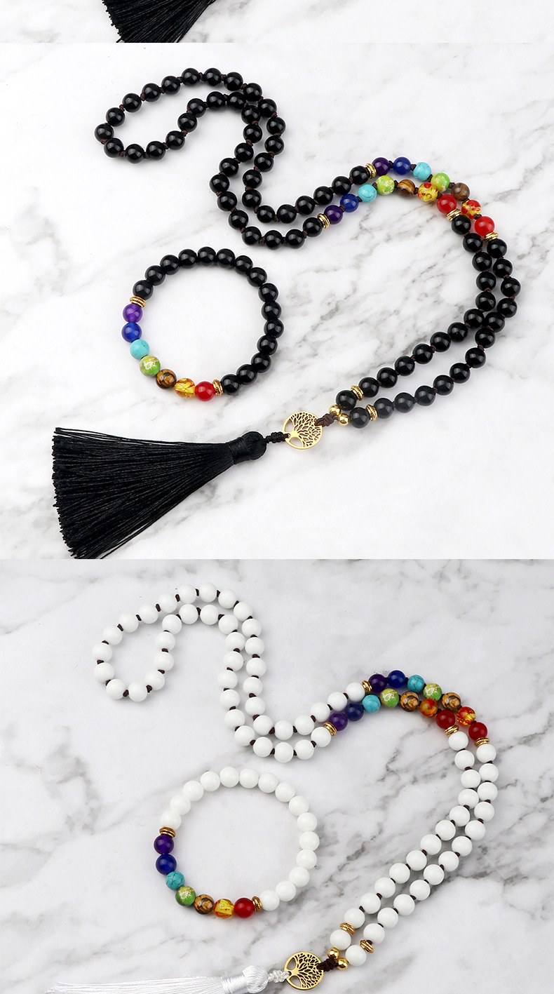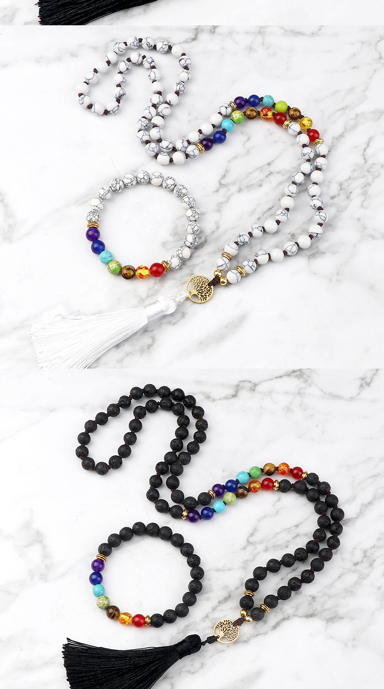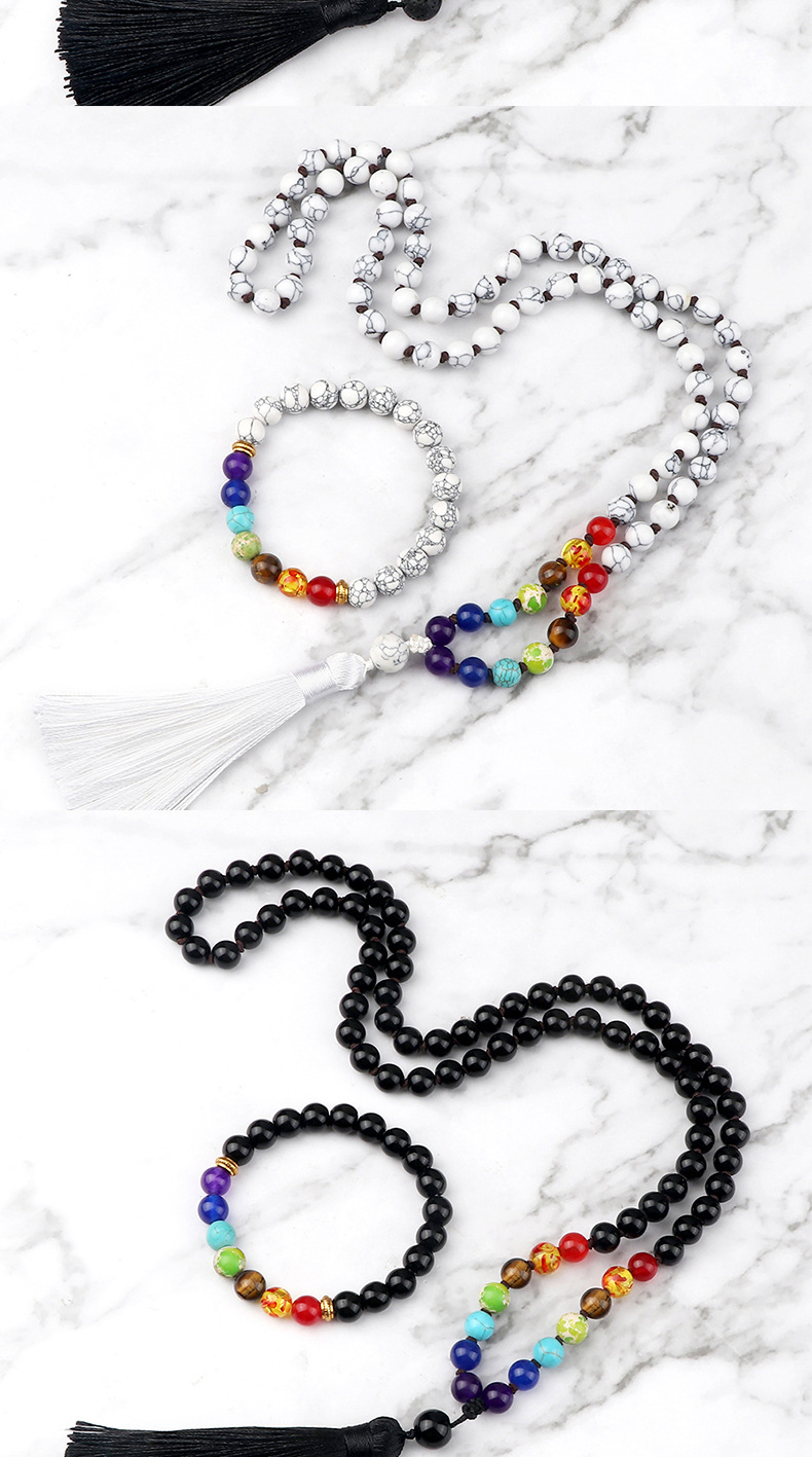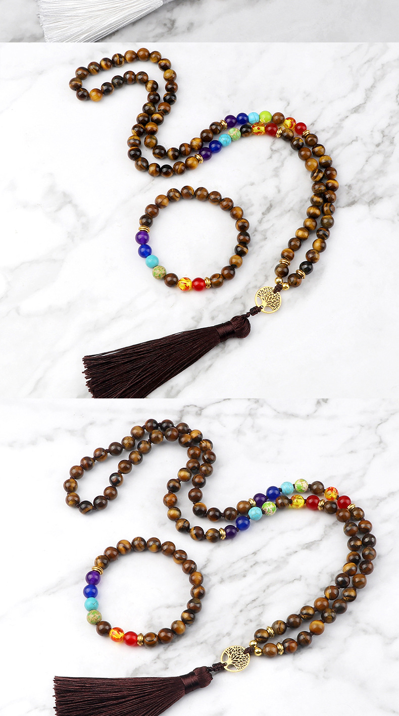 Product information:Treatment Process: Electroplating Type: long necklace Color: Frosted, bright light, volcano, white porcelain, black thread pine, Tiger Eye, Agate Size: 6mm,8mm Style: Unisex Material: Alloy Shape: Bow Style: Ruili