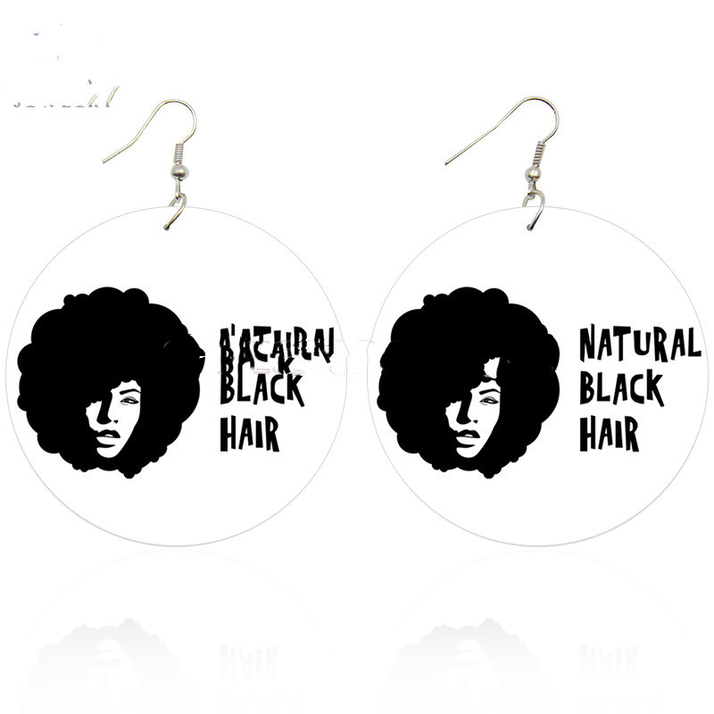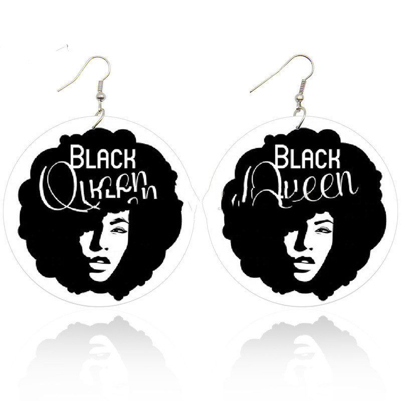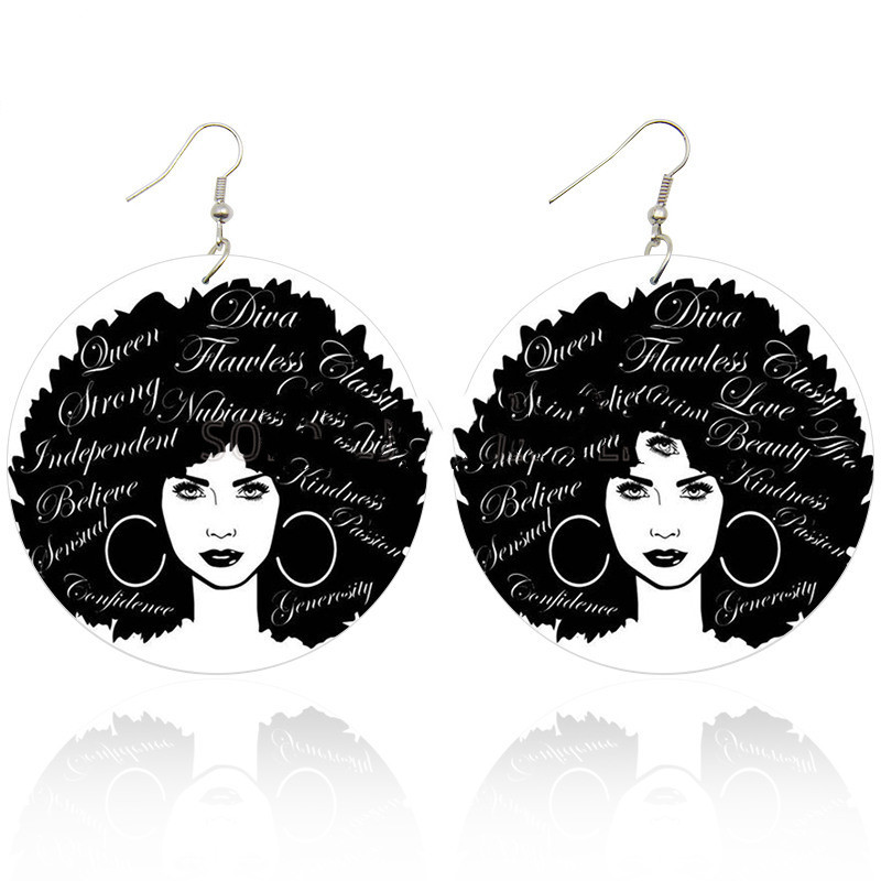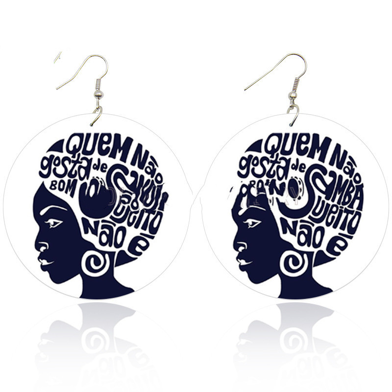 Exaggerated African Fashion Wooden Printed Earrings Whiteboard Black Letter Earrings Earrings Cross-border Jewelry