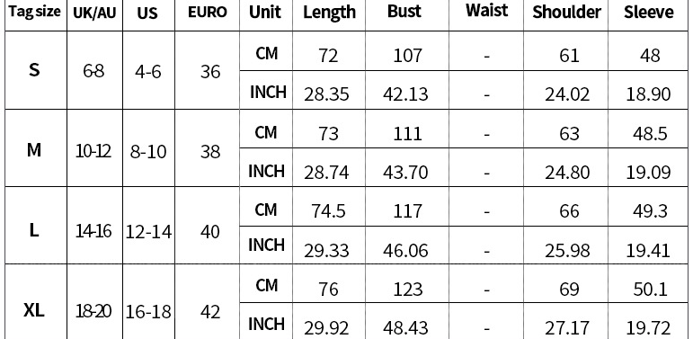 1. Asian sizes are 1 to 2 sizes smaller than European and American people. Choose the larger size if your size between two sizes. Please allow 2-3cm differences due to manual measurement.