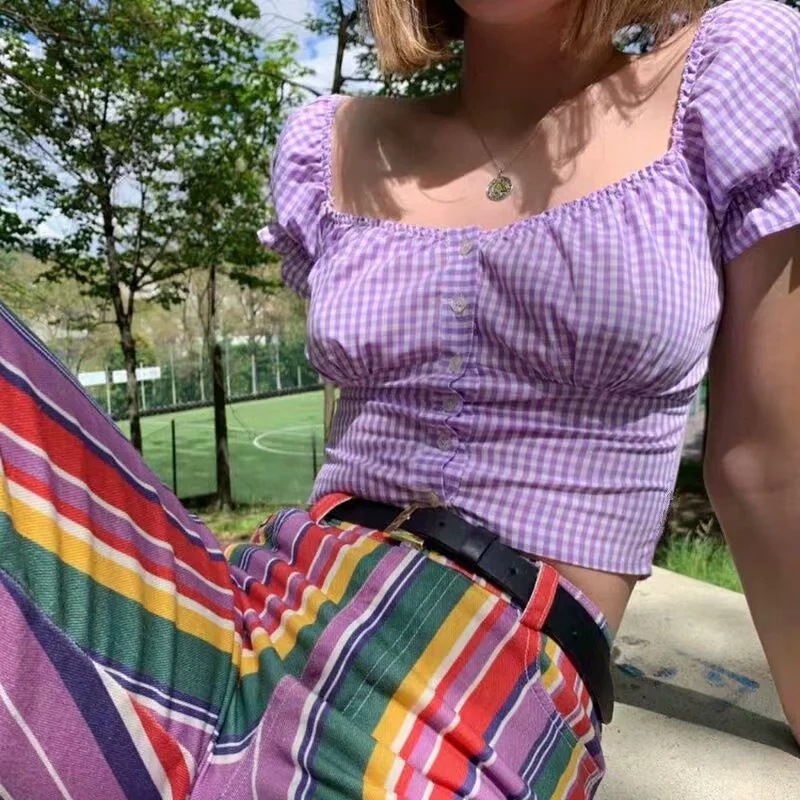 French niche check shirt short sleeves
