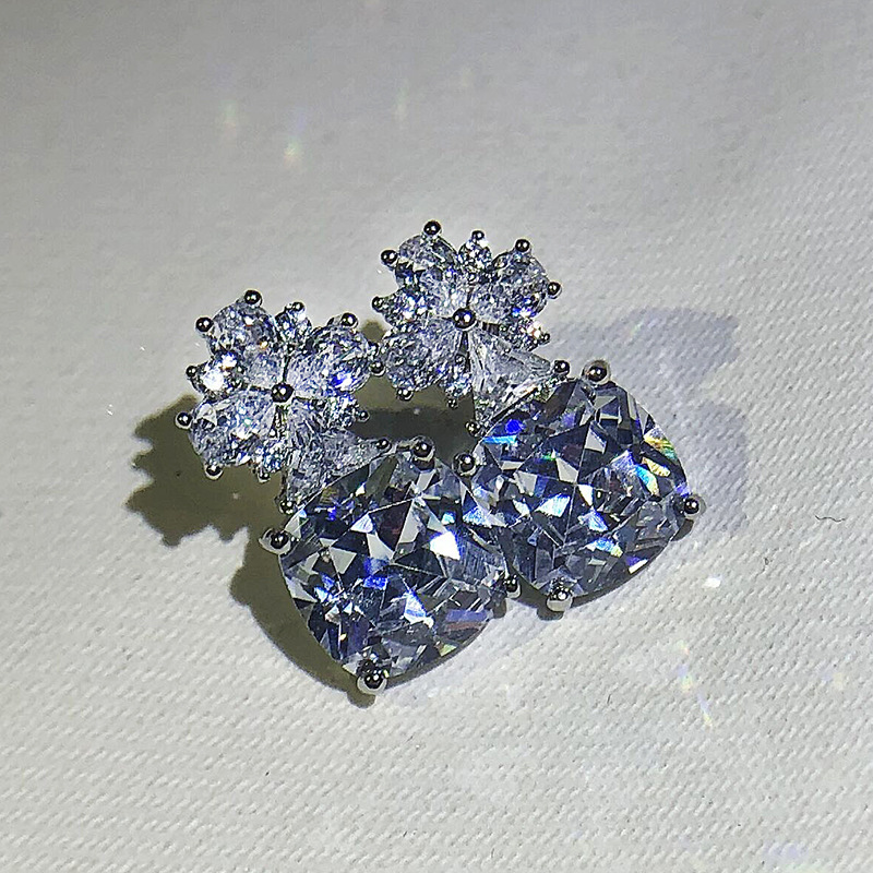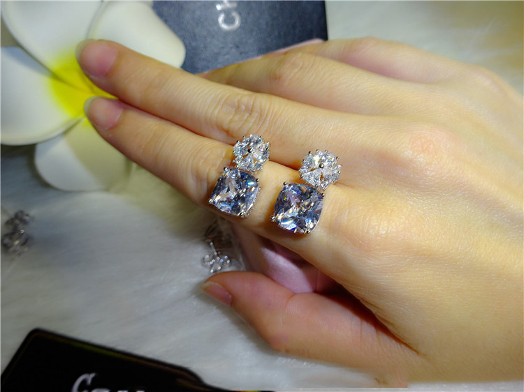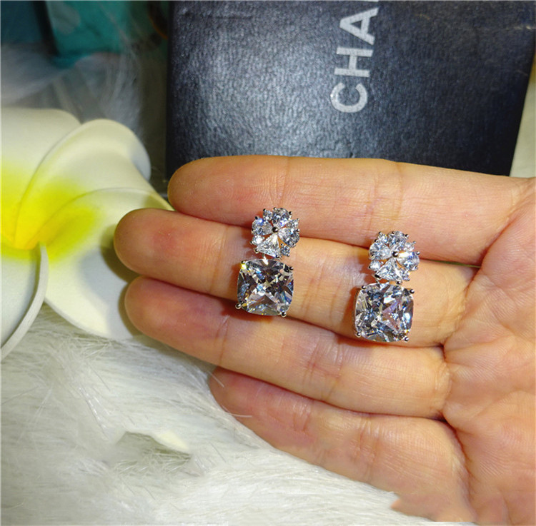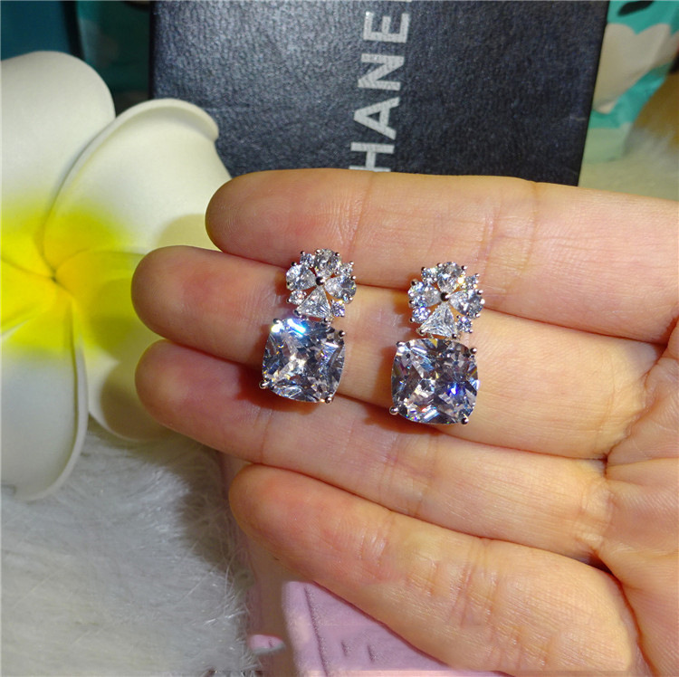 Shiny square zircon earrings