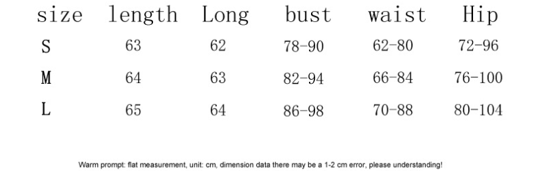 | size | Length | Sleeve Length | bust | Waist | Hips |
