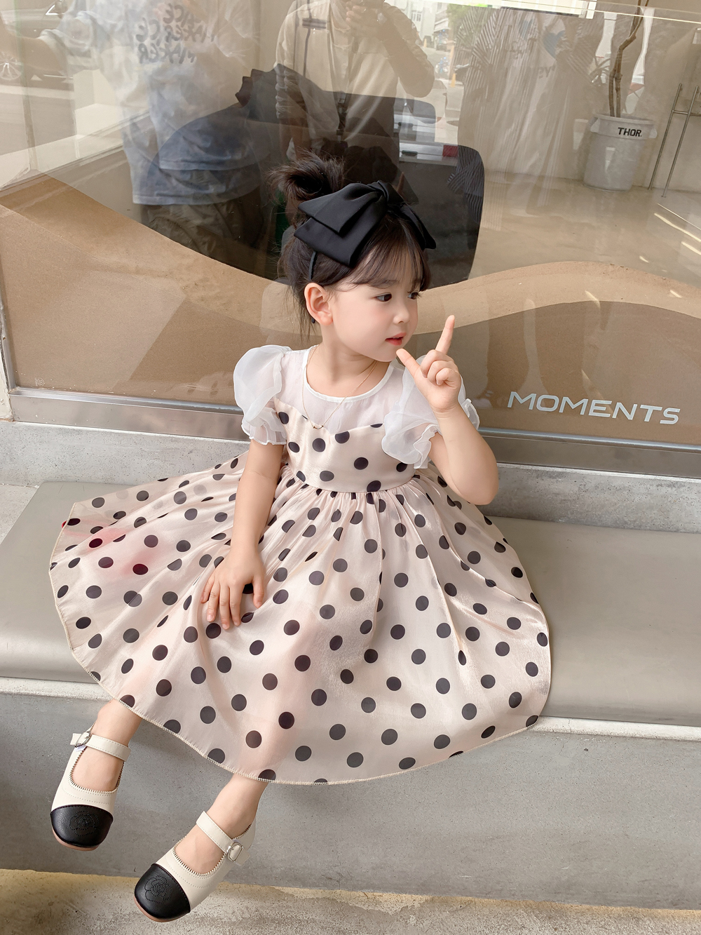 Pattern: DotsStyle: KoreanColor classification: Beige skirtReference height: 90cm, 100cm, 110cm, 120cm, 130cm, 140cm, 150cmStyle: short sleeve