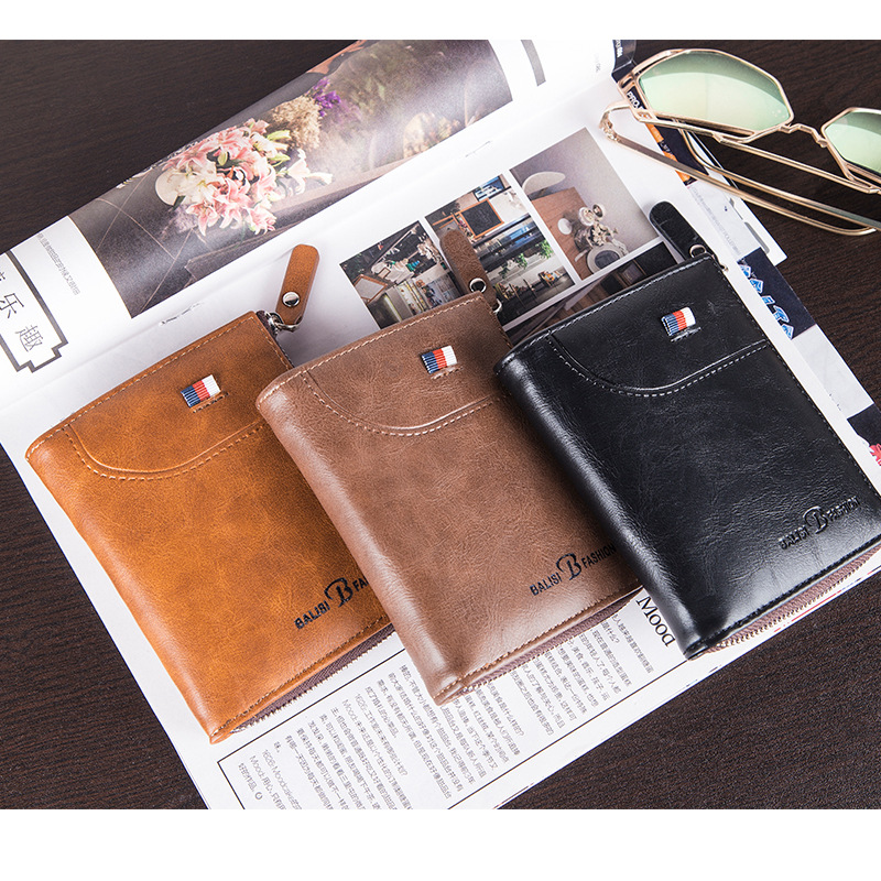 Material: PU leatherWallet folds: 1 foldOpening method: zipperThe internal structure of the small bag: bill holder, photo slot, change slot, card slot, check slotColor: black, brown, light brown