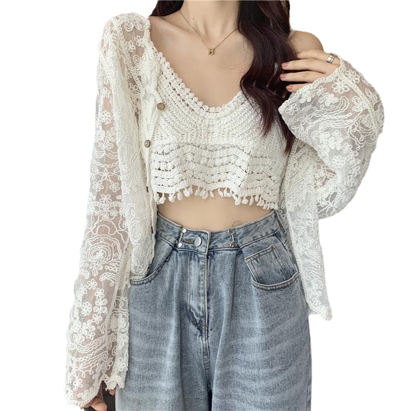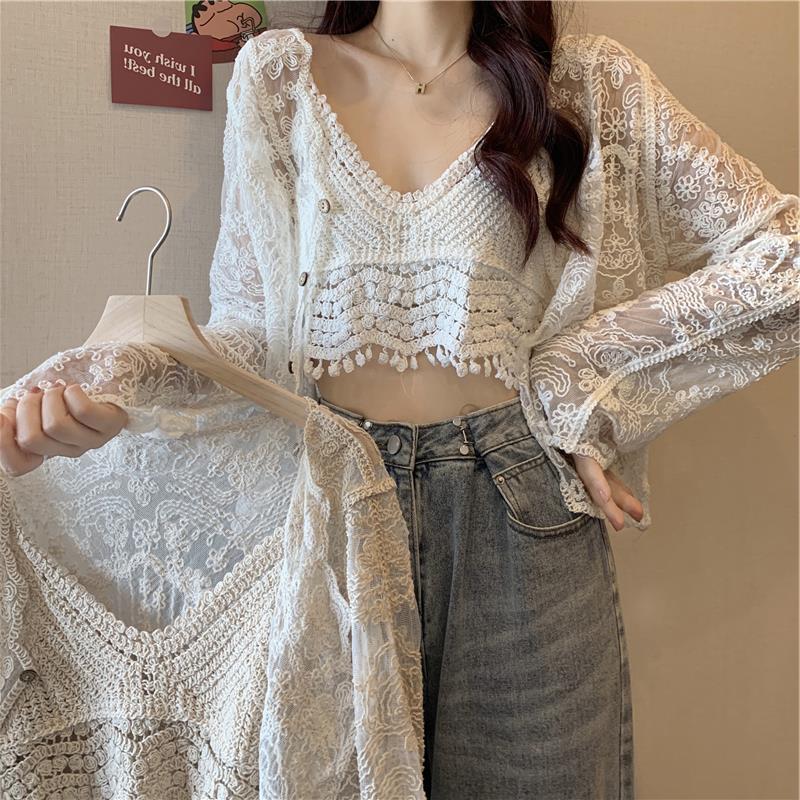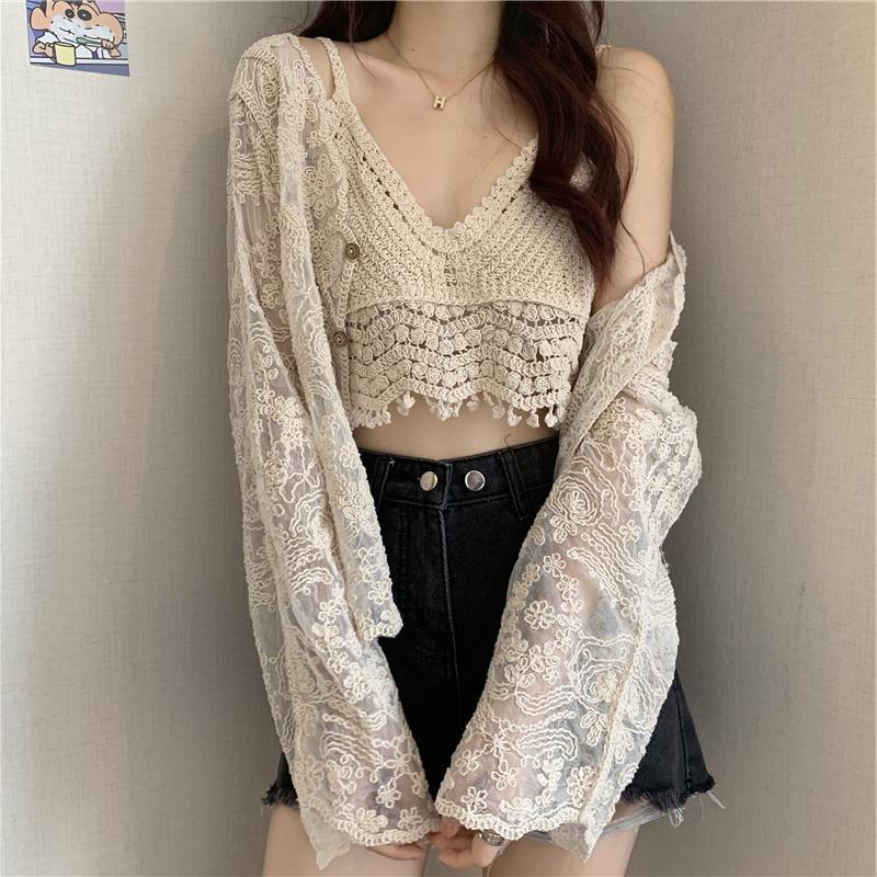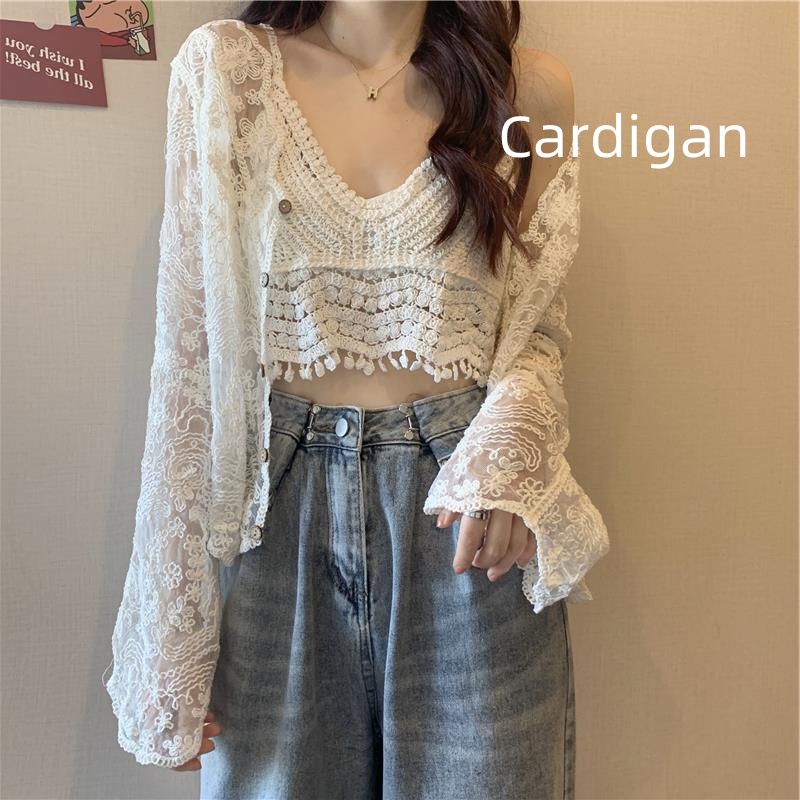 Color: white suspender, apricot sling, apricot cardigan, white cardigan