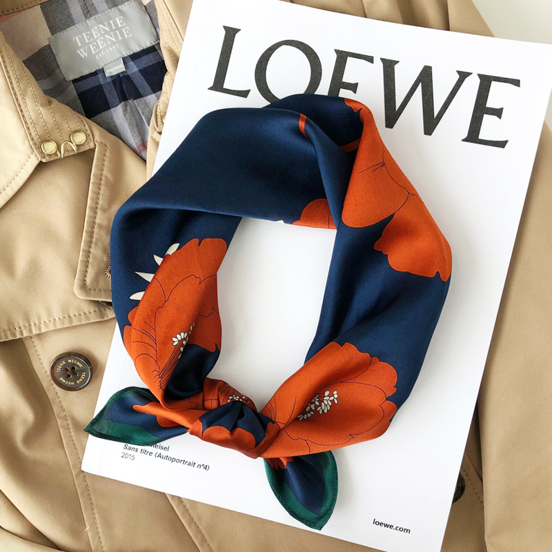 Material: SilkWeaving method: plain weaveProcessing method: printingPopular elements: printingPattern: Plants and flowersStyle: small square scarfWidth (CM): 53Style: Japanese and Korean sweetIngredient content: 100%