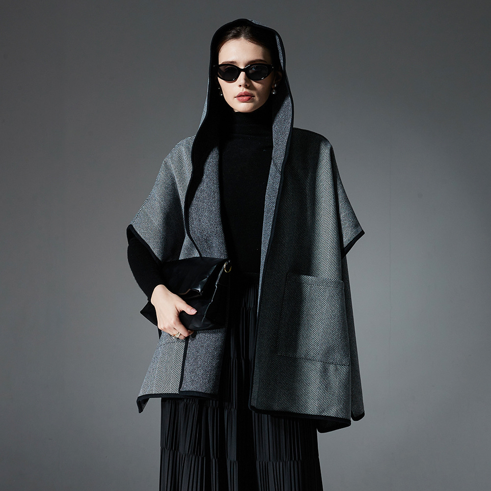 Color: 01# herringbone hooded black, 02# herringbone hooded shawl khaki