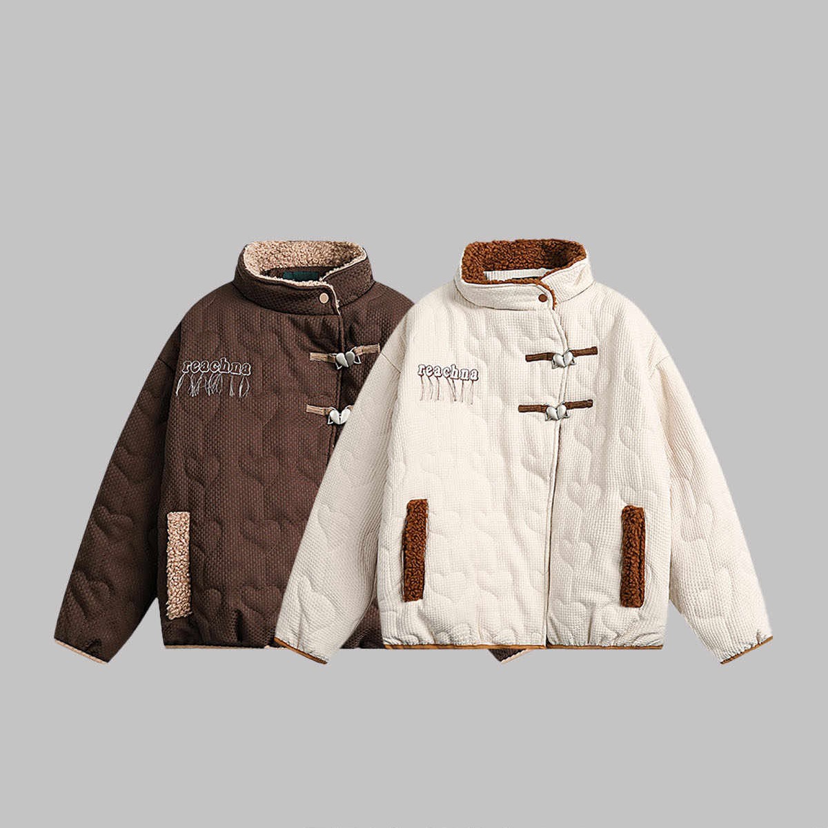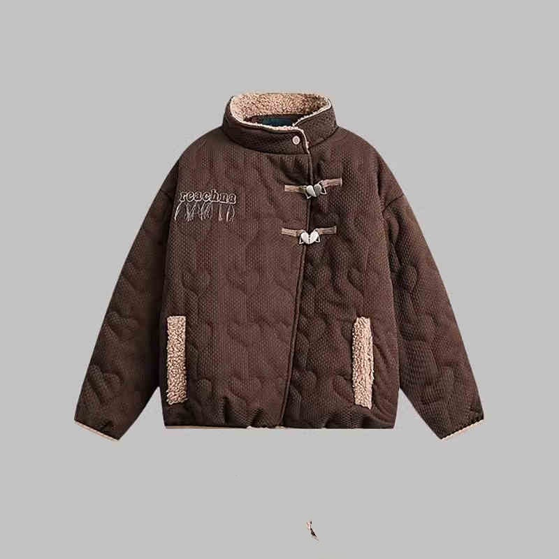 Product information: Size: M L XL 2XL Collar type: Stand Collar Color: Brown creamy-white Version: Loose Material composition: polyethylene terephthalate (polyester) 100%