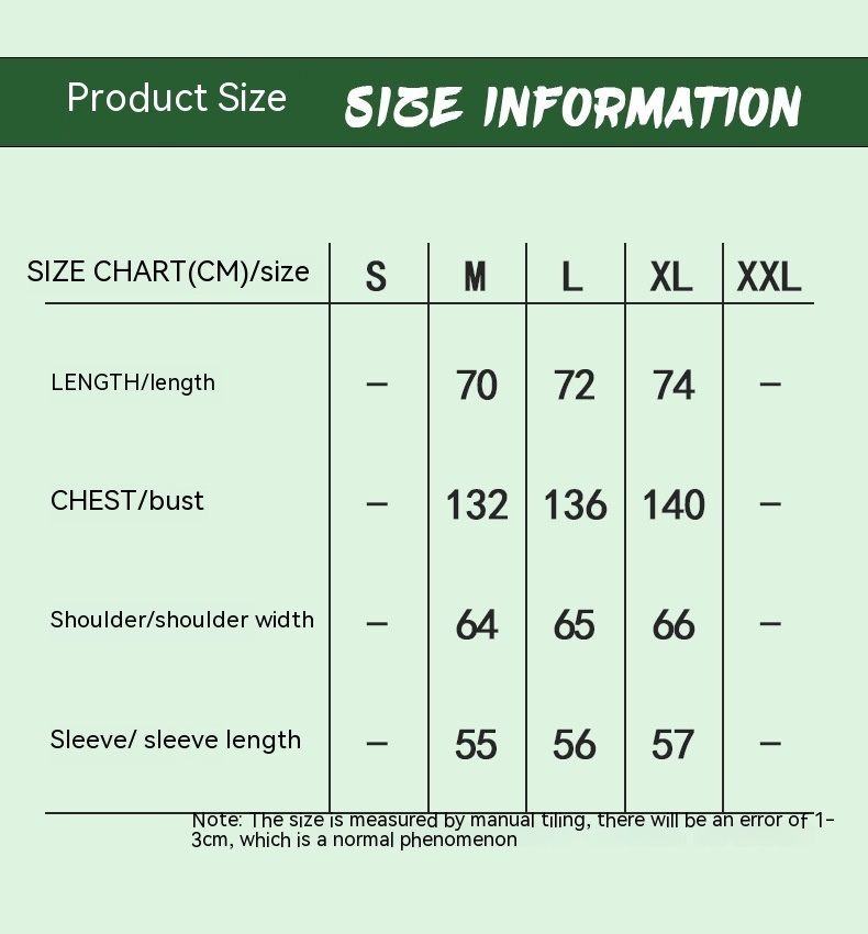 1. Asian sizes are 1 to 2 sizes smaller than European and American people. Choose the larger size if your size between two sizes. Please allow 2-3cm differences due to manual measurement. 2. Please check the size chart carefully before you buy the item, if you don't know how to choose size, please contact our customer service. 3.As you know, the different computers display colors differently, the color of the actual item may vary slightly from the following images.