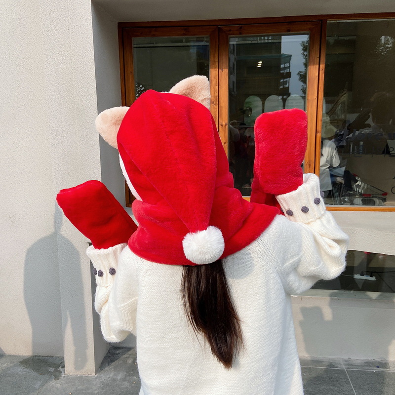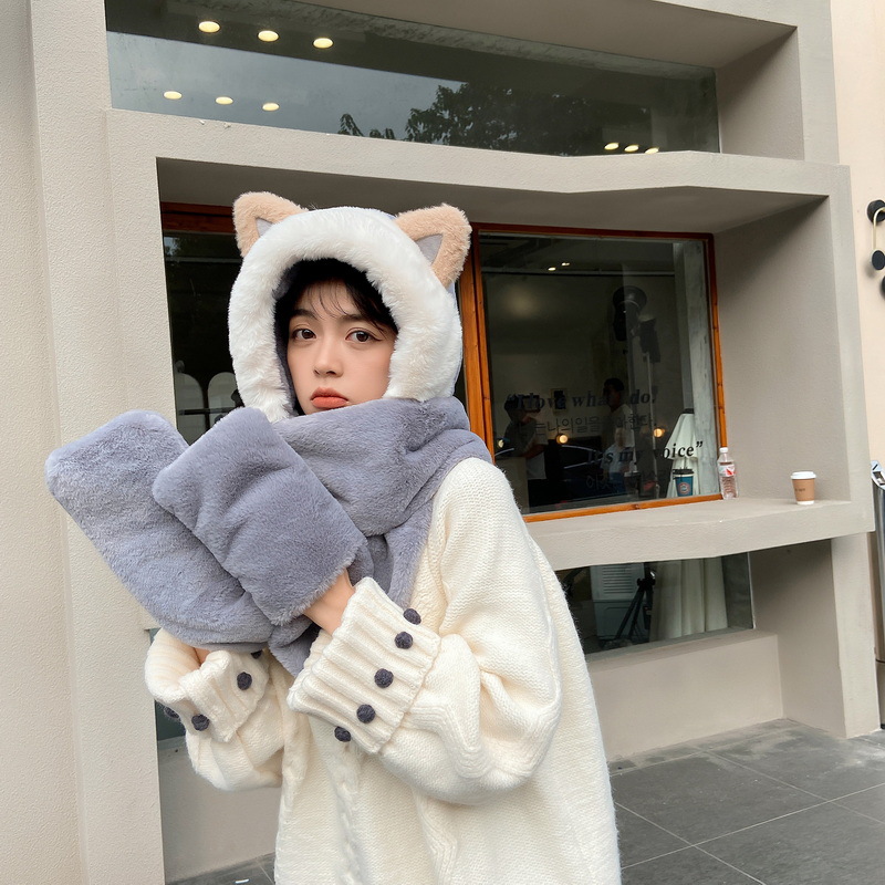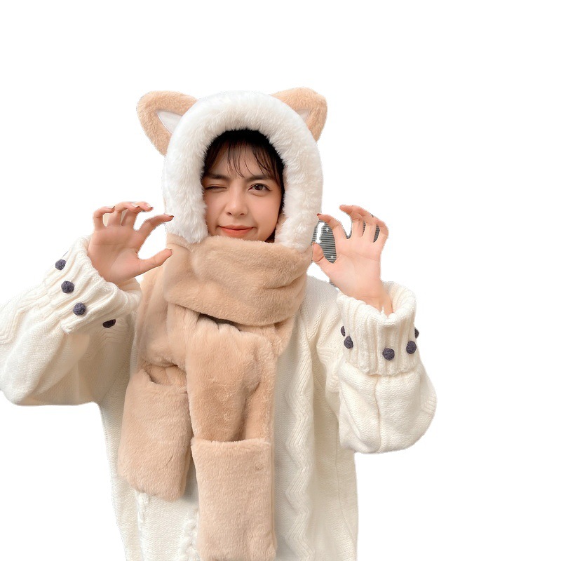 Combination: three-piece scarf, hat and gloves