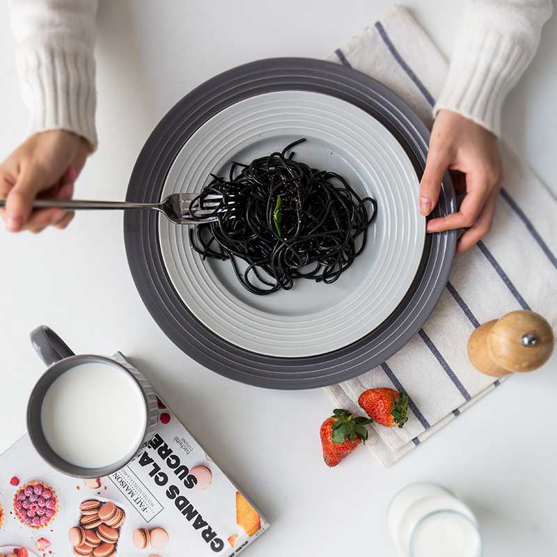 Product information:Material: porcelain Shape: round Color classification: Roman Holiday 11-inch plate dark gray, Disk Type: plate dish Tableware craft: colored glaze Size: caliber about: 28.5cm height about: 3cm bottom diameter about: 17cm