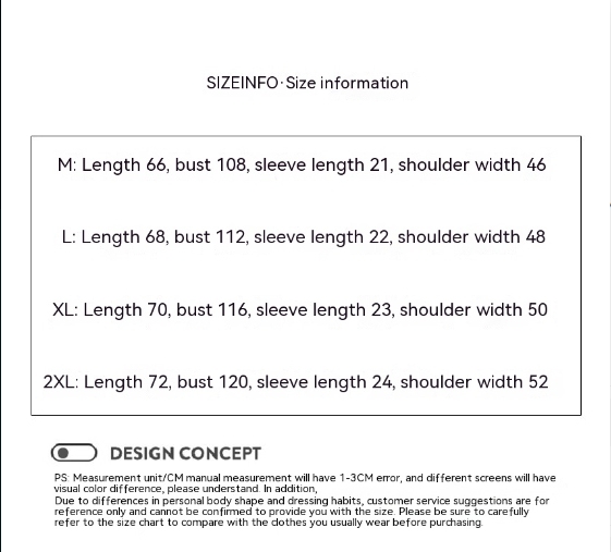 1. Asian sizes are 1 to 2 sizes smaller than European and American people. Choose the larger size if your size between two sizes. Please allow 2-3cm differences due to manual measurement. 2. Please check the size chart carefully before you buy the item, if you don't know how to choose size, please contact our customer service. 3.As you know, the different computers display colors differently, the color of the actual item may vary slightly from the following images.