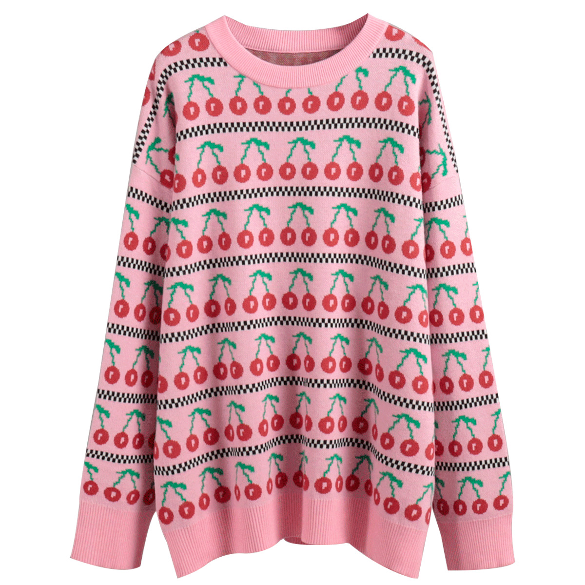 Product information: Color: pink, purple Size: S,M,L Version: Loose Popular elements: Cherry Thickness: medium Main fabric composition: viscose fiber Length: medium length (65cm