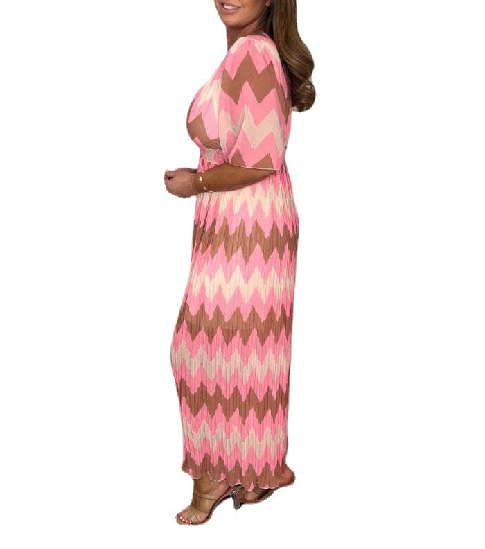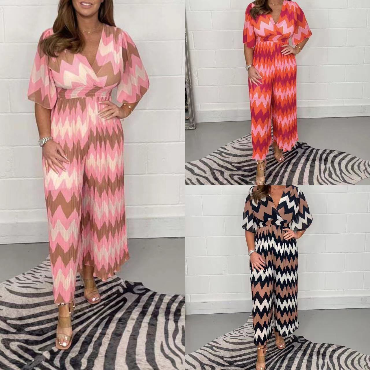 Product information :Skirt type: wide-leg skirtCollar type: V-neckWaist type: high waistMain fabric composition: polyesterColor: red orange, pink brown, black brownSize Information:Size: S,M,L,XL,XXL,XXXL.Packing list:Dress *1