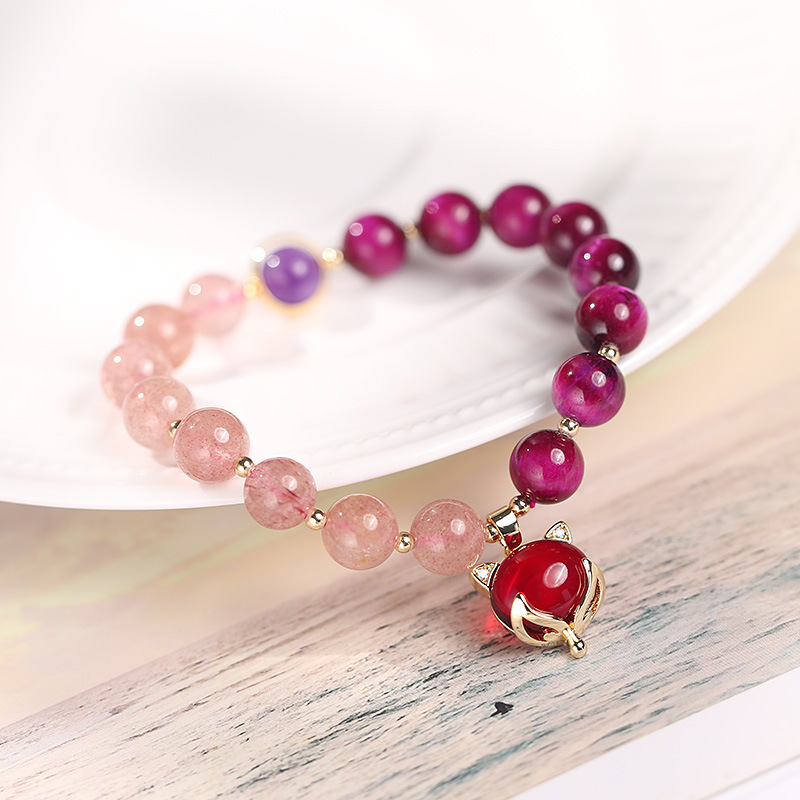 Color: Strawberry crystal tiger eye stone hanging fox, strawberry crystal tiger eye stone hanging brave