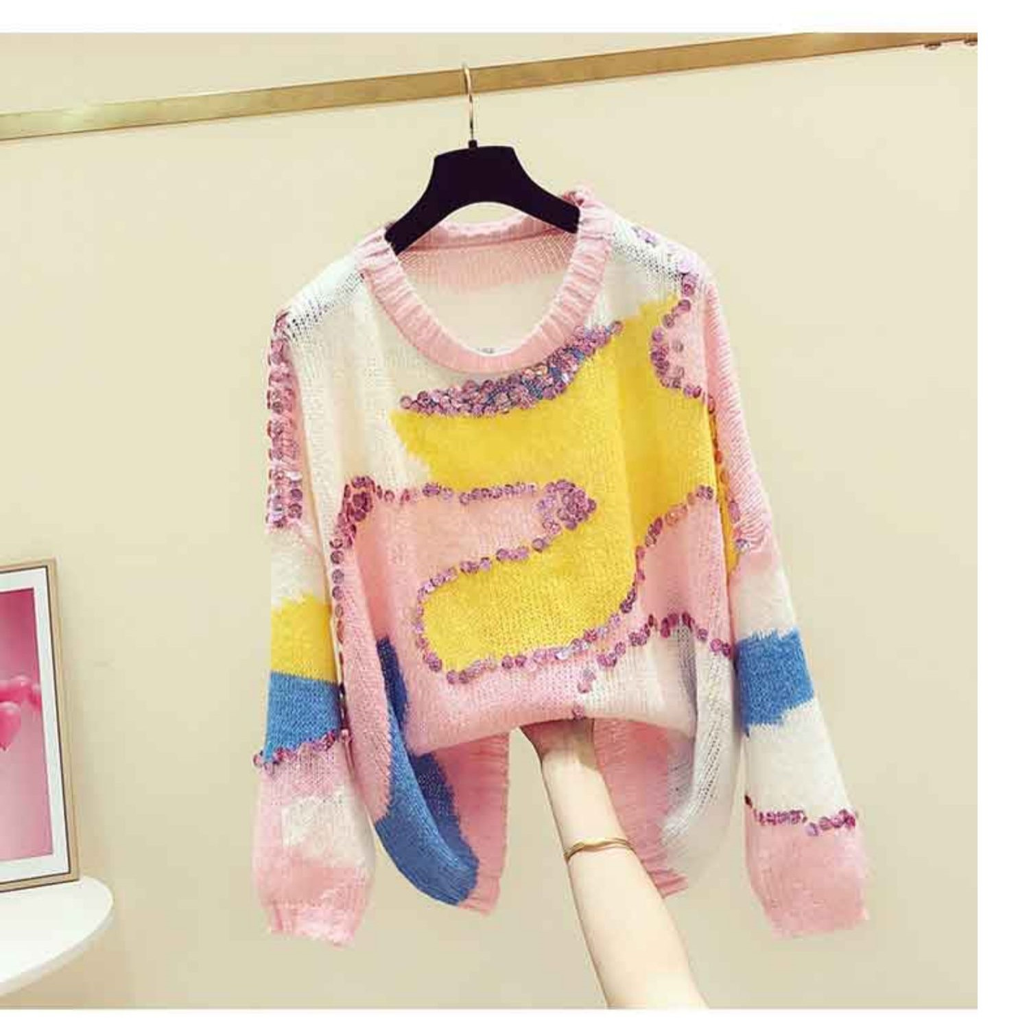 Contrast Color Loose And Slim Sweater