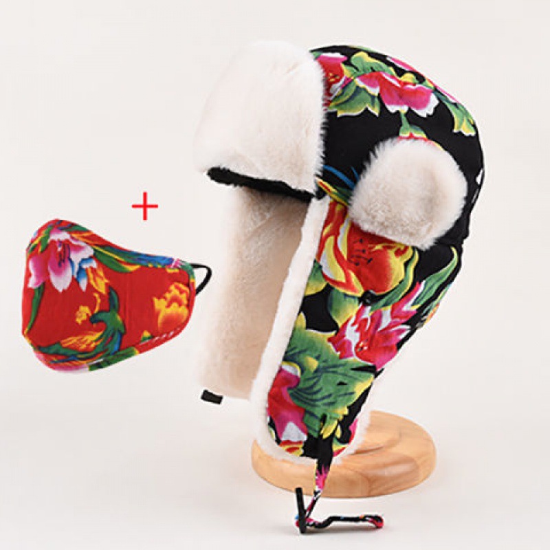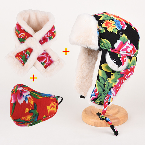 Color: Color, corduroy monocular Burgundy, black, red scarf [for adults and children], color mask, red hat + flower mask, black hat + flower mask