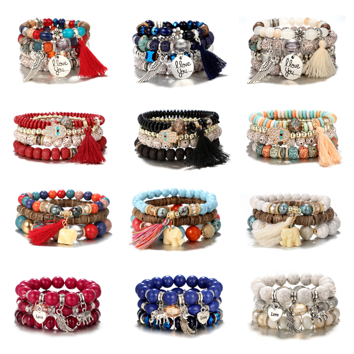 Wooden Bead Eye Palm Alloy Beaded Bracelet 4-piece Set