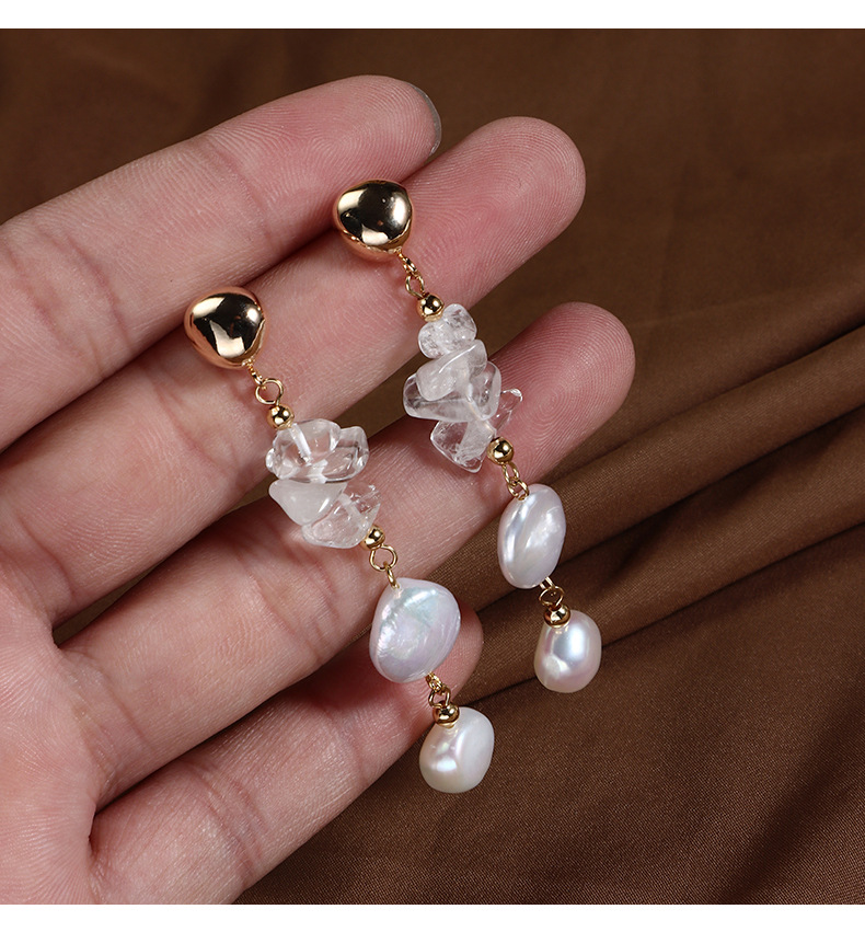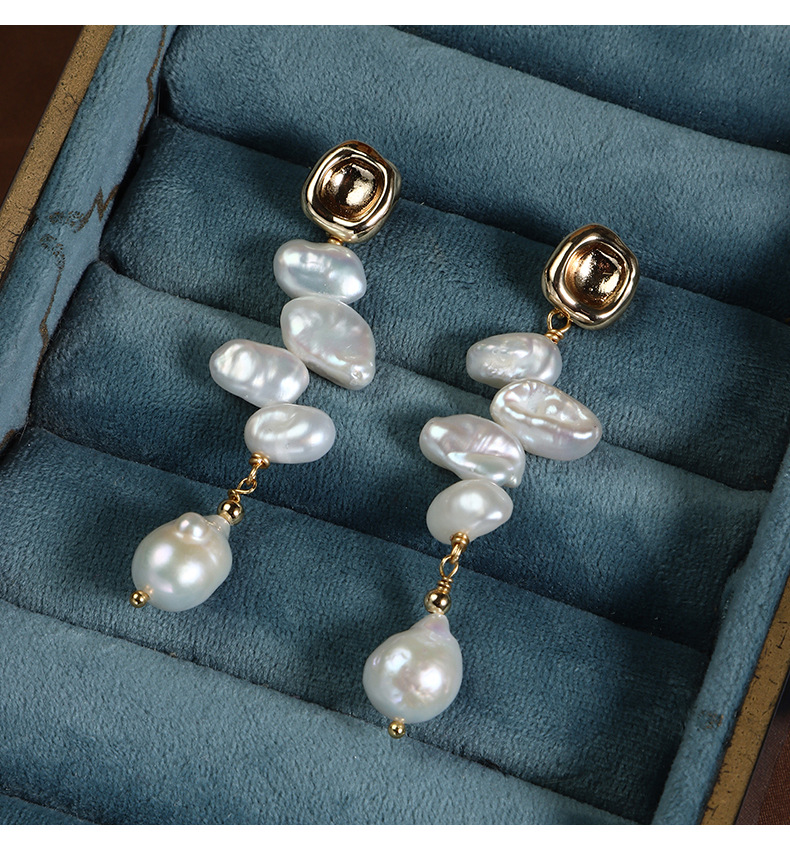 The width and diameter of the Baroque earrings are approximately 10mm, the width of the button pearls is about 11mm, the width of the accessories is around 9mm, and the overall length of the earrings is about 65mm