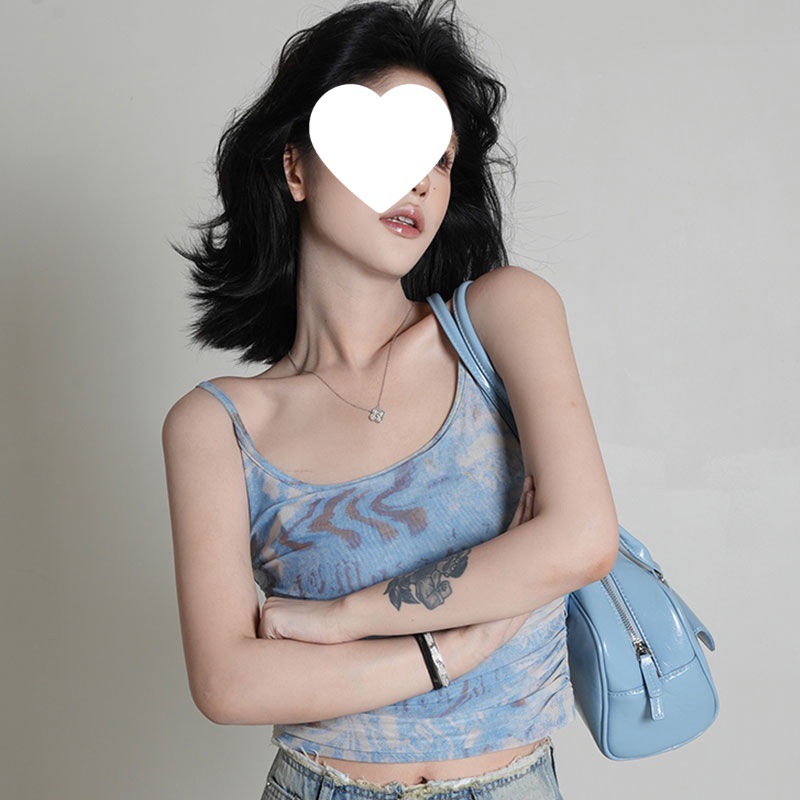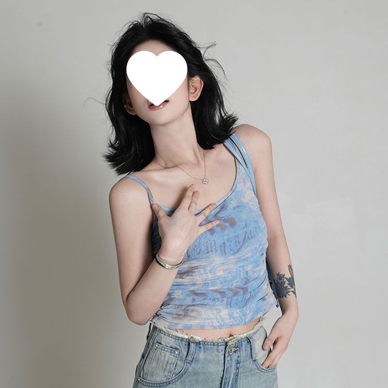 Color: blue top, blue vest
