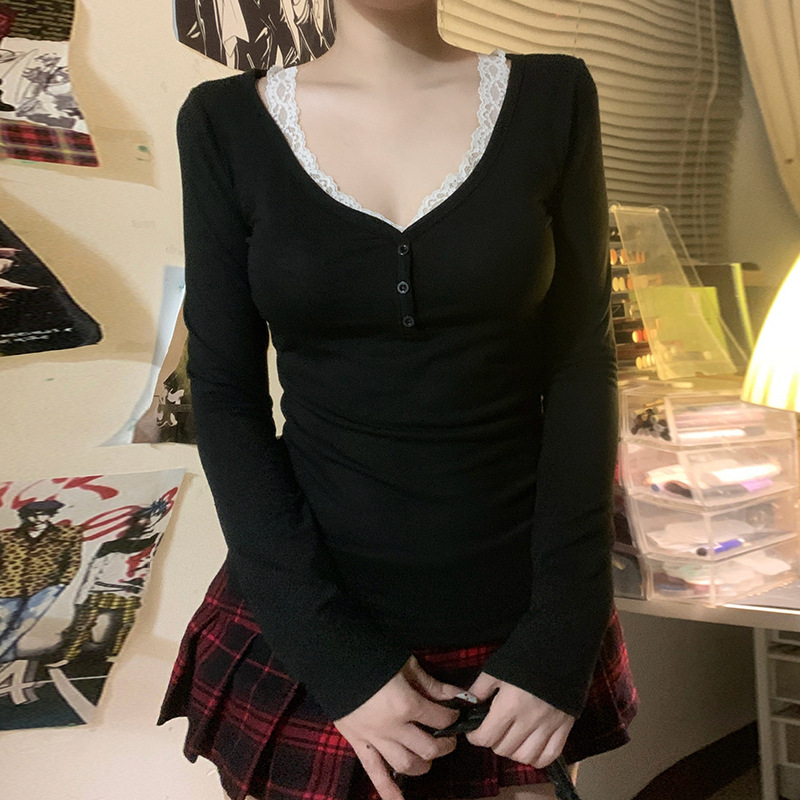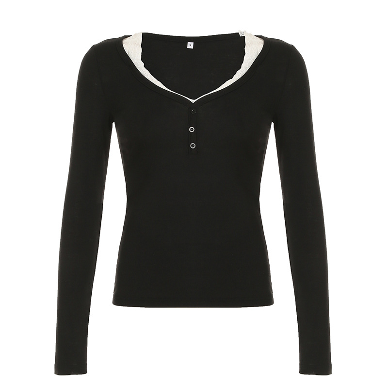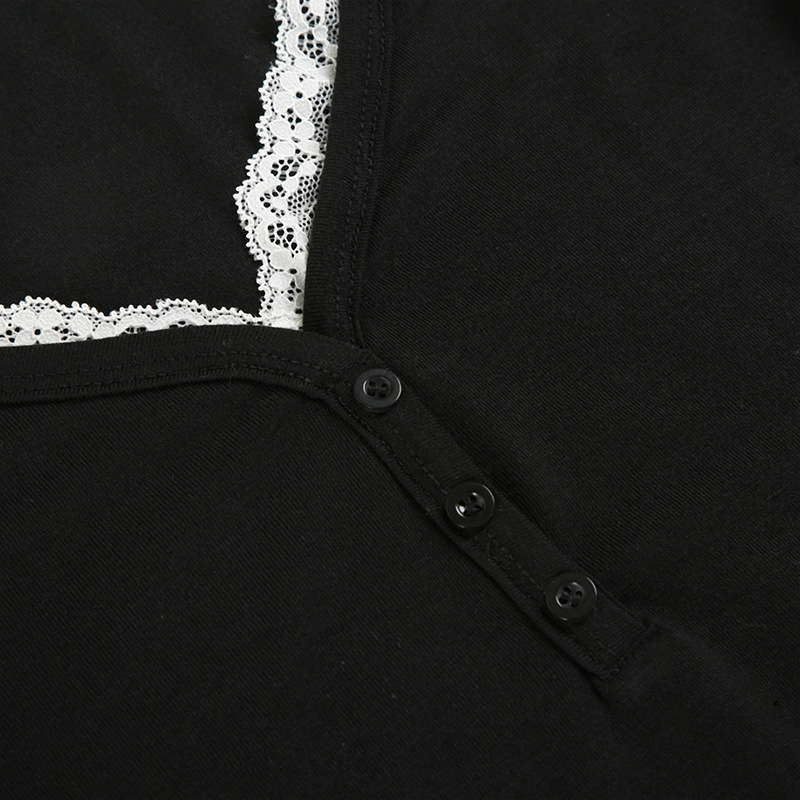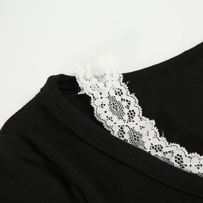 Product information: Color: Black Size: S,M,L Version: slim fit Style type: private clothing socialite Popular elements: lace Style: False two-piece suit Fabric name: knitted Main fabric composition: Polyester (polyester fiber)