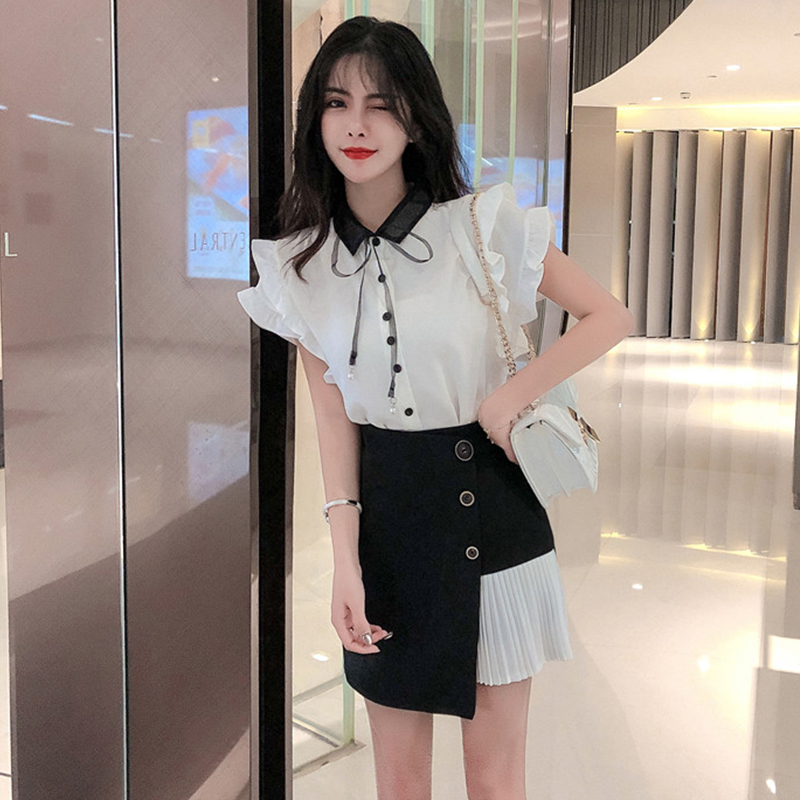 Color classification: white clothing + black skirt, blue clothing + khaki skirt, apricot clothing + apricot skirt