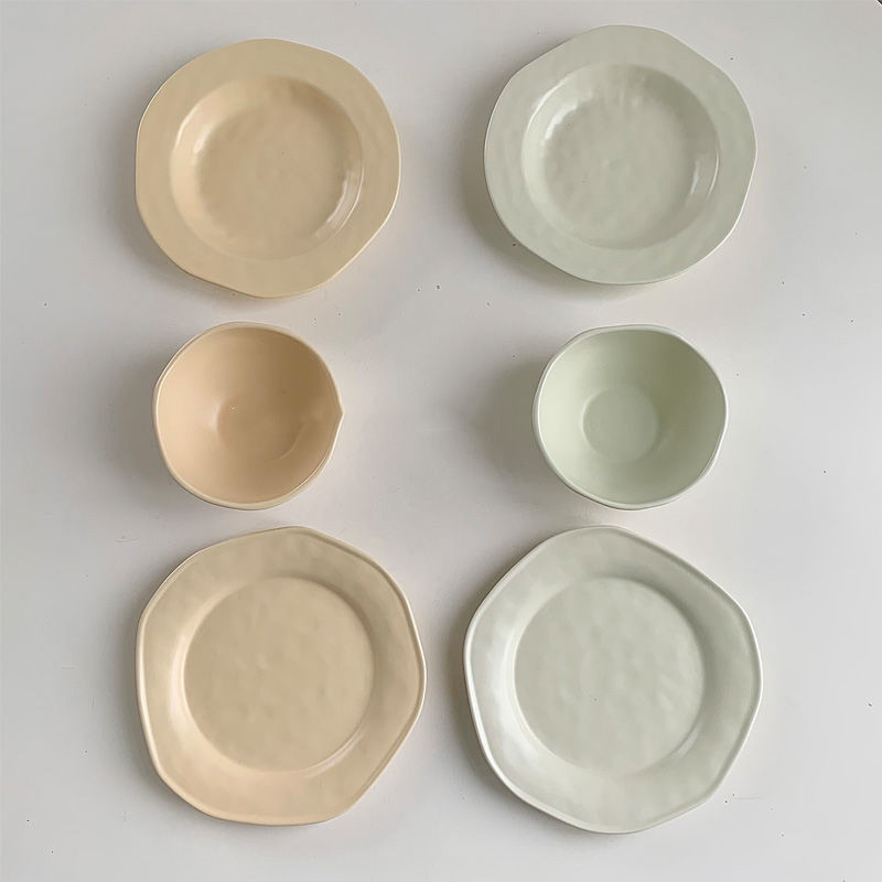 Color: goose yellow 8-inch flat plate, goose yellow 8-inch soup plate, goose yellow bowl, blue-grey 8-inch flat plate, blue-grey 8-inch soup plate, blue-grey bowl
